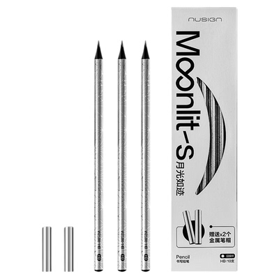 Nusign纽赛星际银圆杆黑木铅笔小学生专用一二年级含笔帽无铅毒高颜值小银杆2bHB考试幼儿园写字练字绘画安全