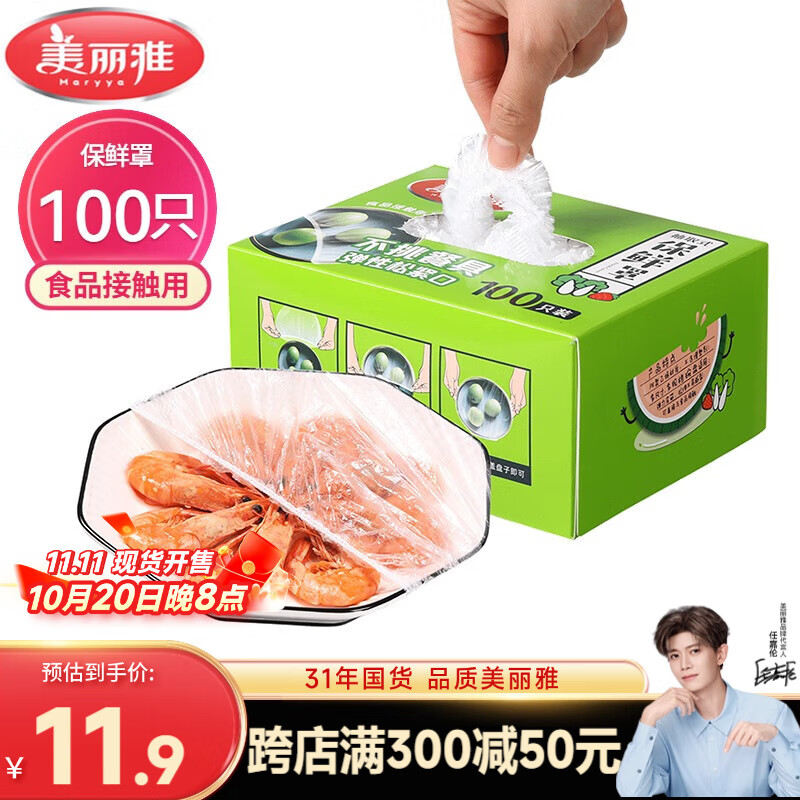 美丽雅 一次性保鲜膜套盒装100只 冰箱食物保鲜罩 松紧自封口大小通用