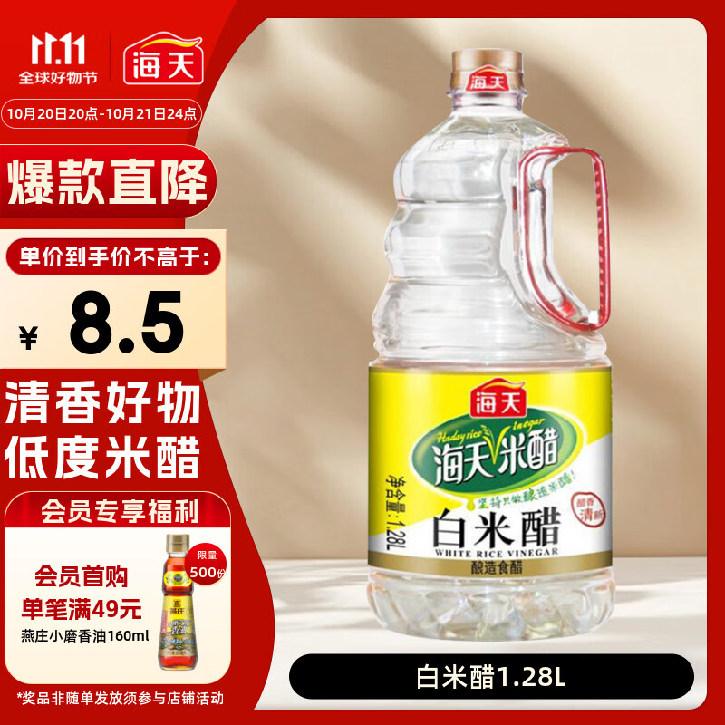 海天 白米醋 3.5度1.28L 点蘸调味凉拌 醋香浓郁 调味品调味料