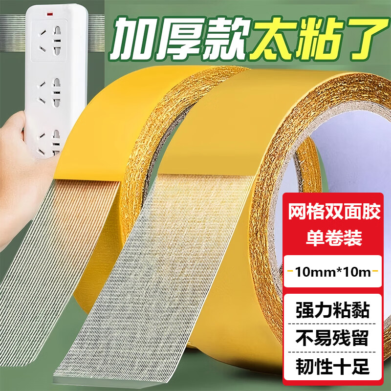 誉品(YUPIN)网格双面胶 强力布基胶带对联专用贴春联高粘度不易留胶黄色防水免打孔墙面用 宽10mm*长10m/1卷装