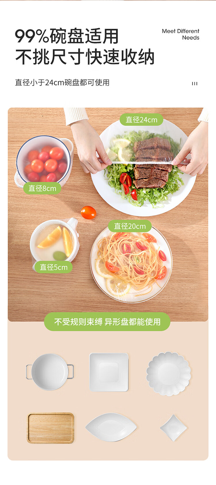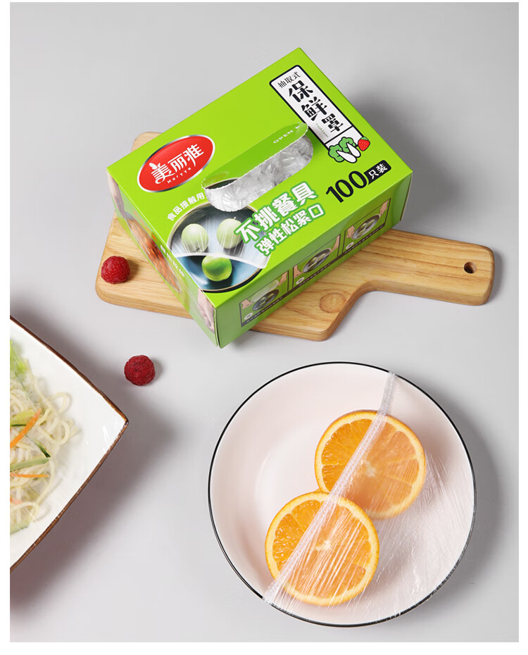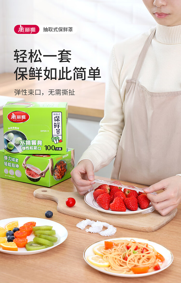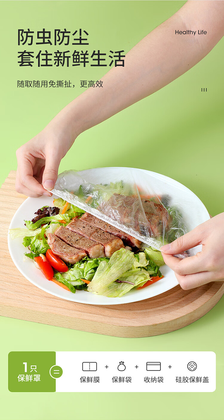 美丽雅 一次性保鲜膜套盒装100只 冰箱食物保鲜罩 松紧自封口大小通用