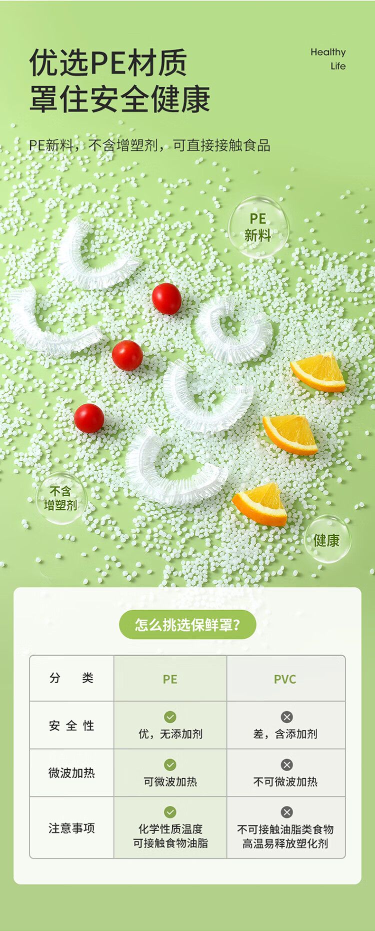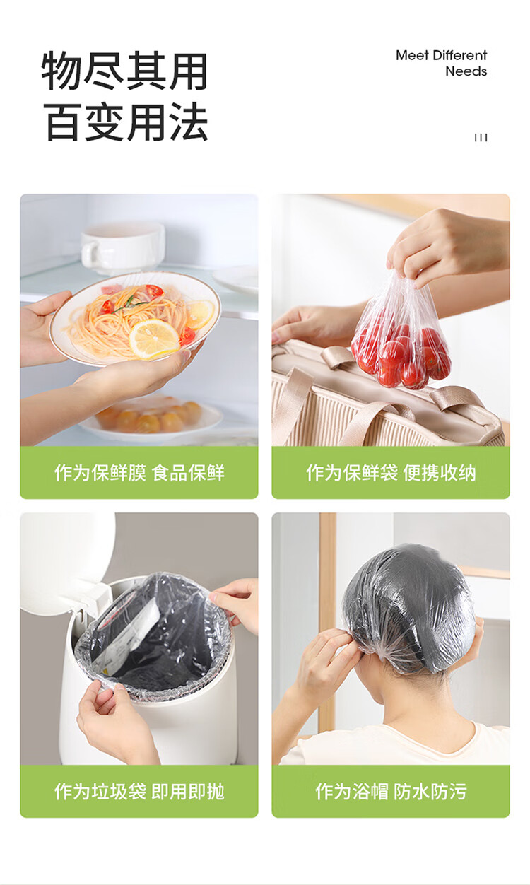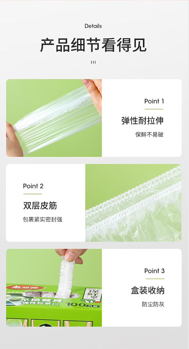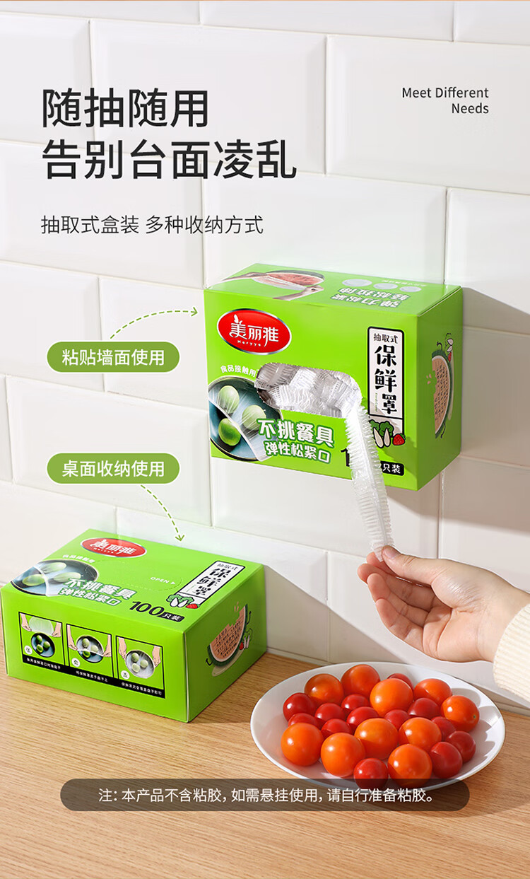 美丽雅 一次性保鲜膜套盒装100只 冰箱食物保鲜罩 松紧自封口大小通用