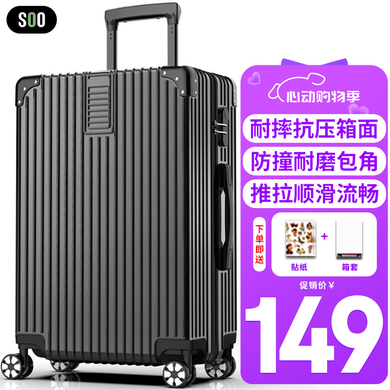 SOO行李箱男万向轮拉杆箱耐磨抗摔26英寸A330旅行箱密码箱女商务黑色