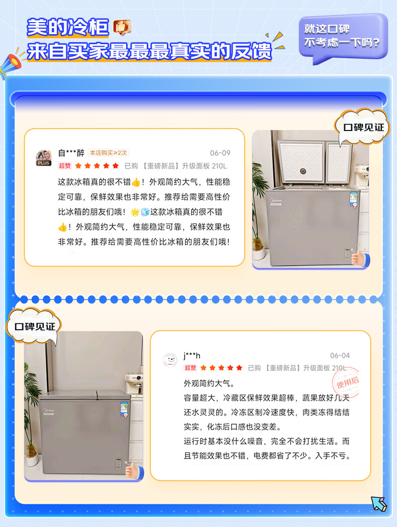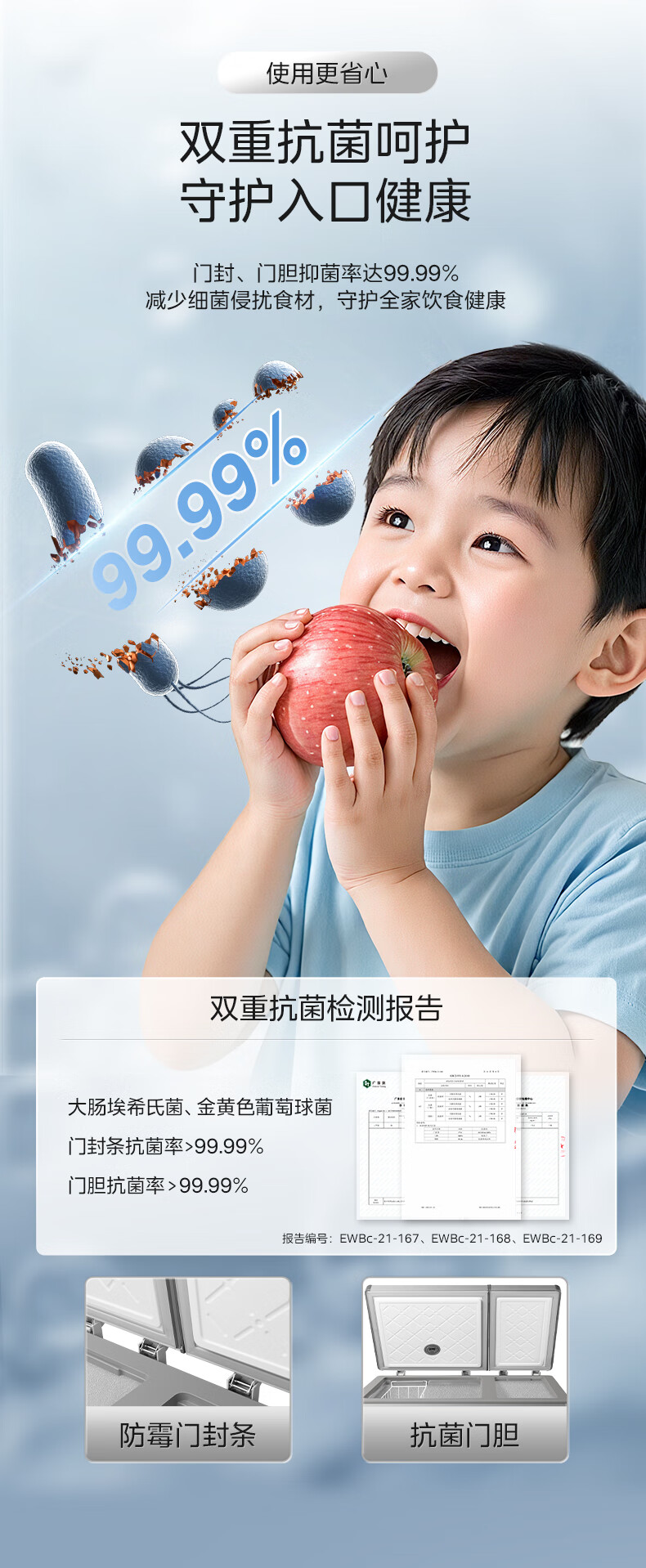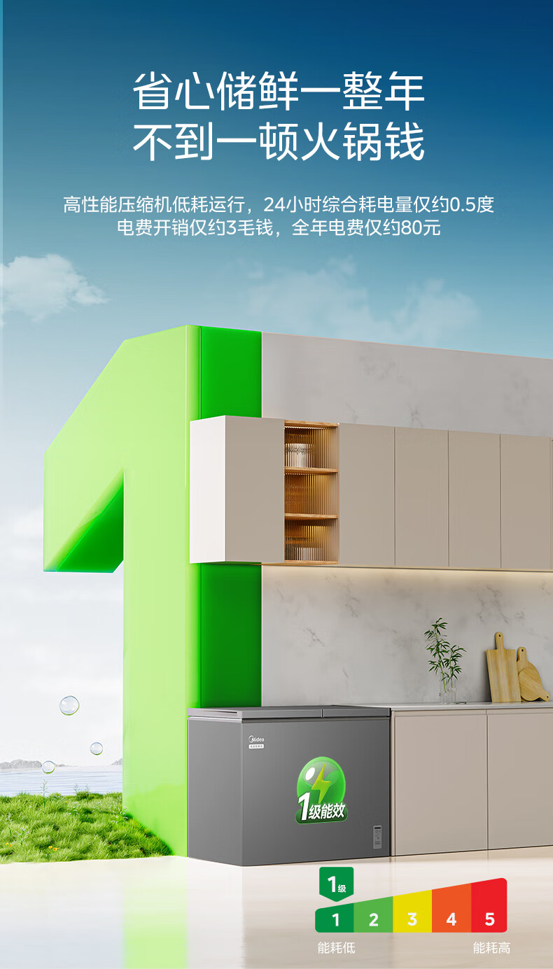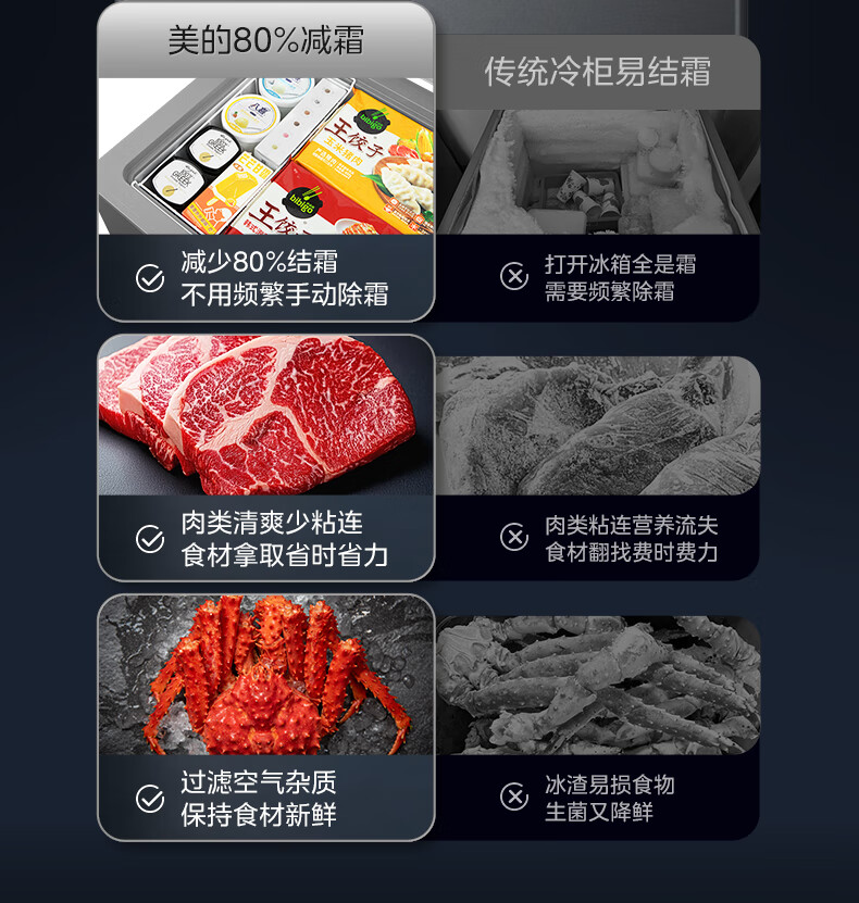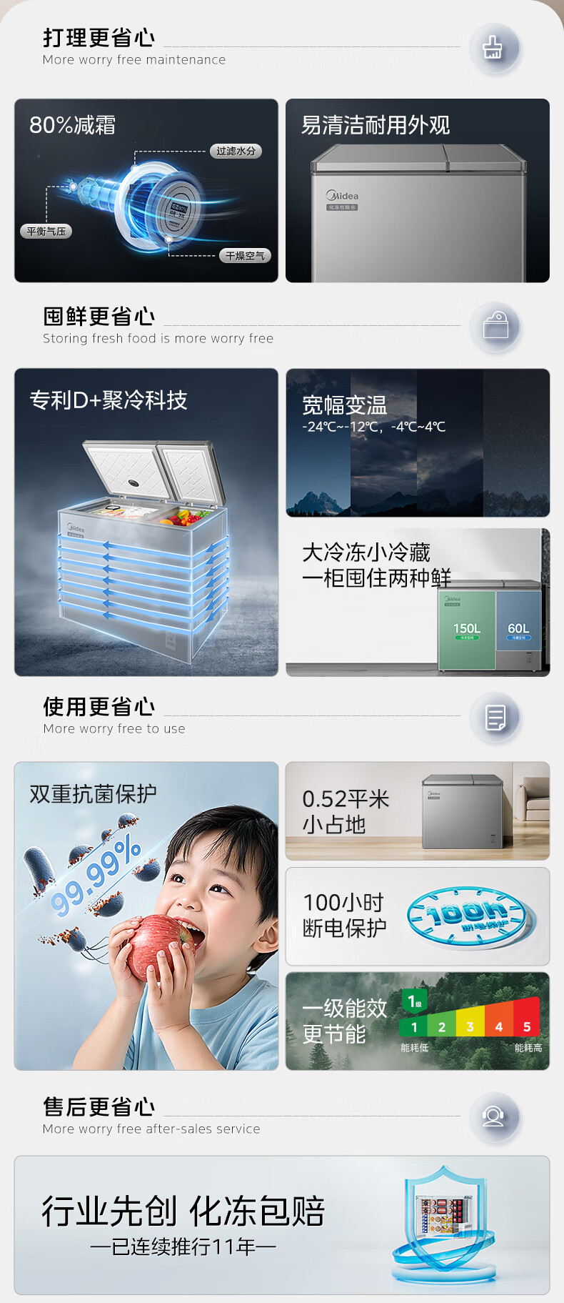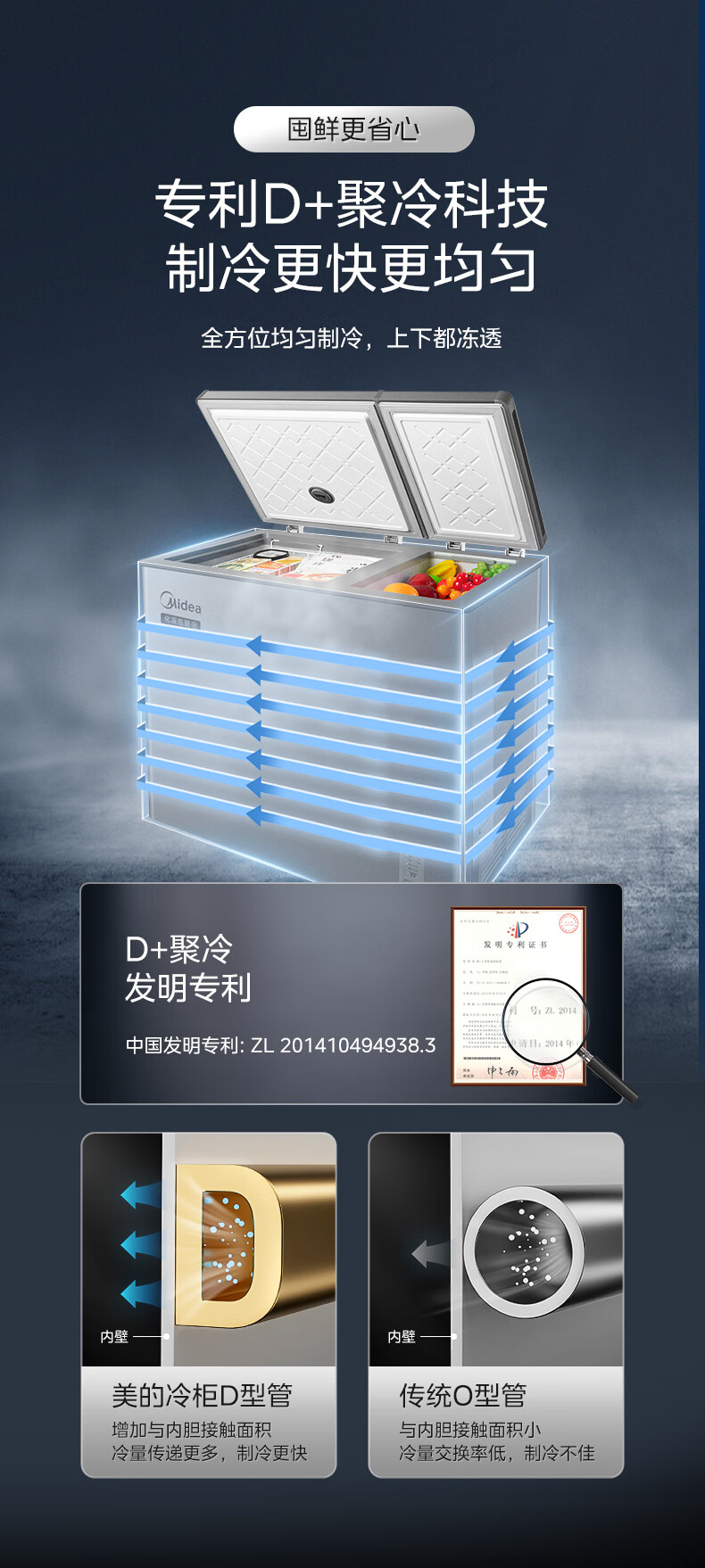 美的(Midea)210升双温双箱家商两用冰柜大冷冻小冷藏卧式节能低音冷柜小型冰箱BCD-210DKEM(E)钛钢灰国家补贴