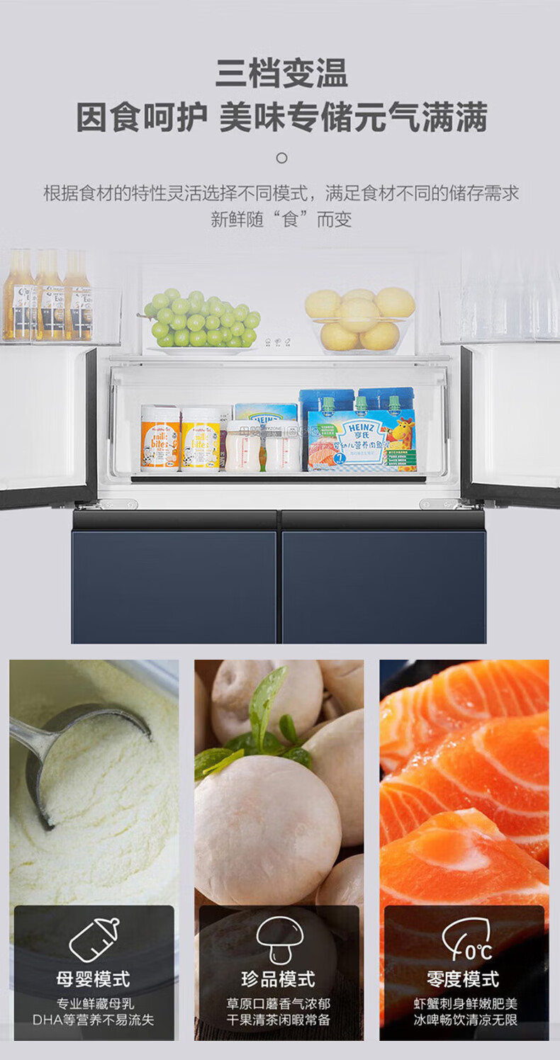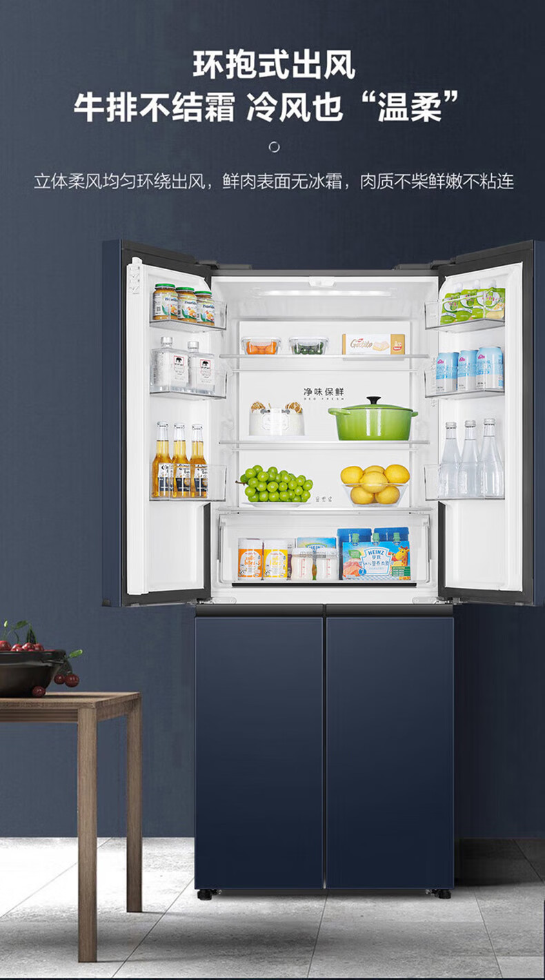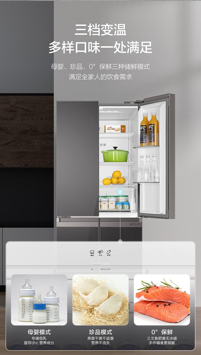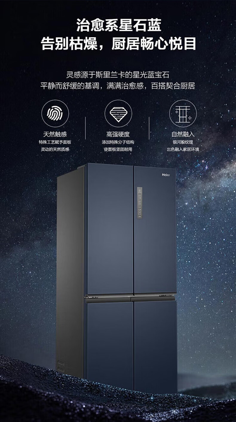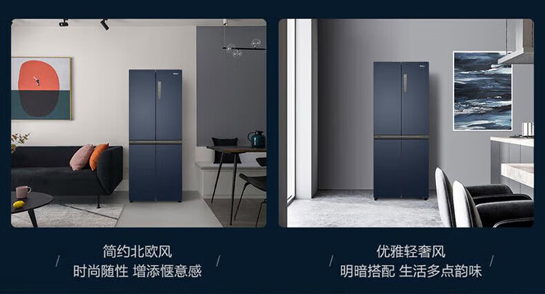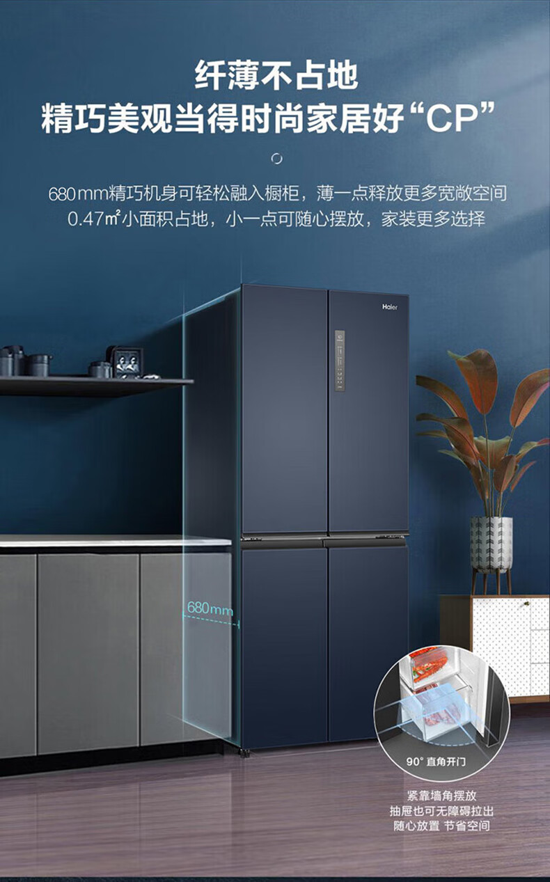 海尔(Haier)406升十字对开门大容量家用冰箱 一级能效双变频风冷无霜三档变温 DEO净味 406升智联WIFI玻璃面板玉墨银