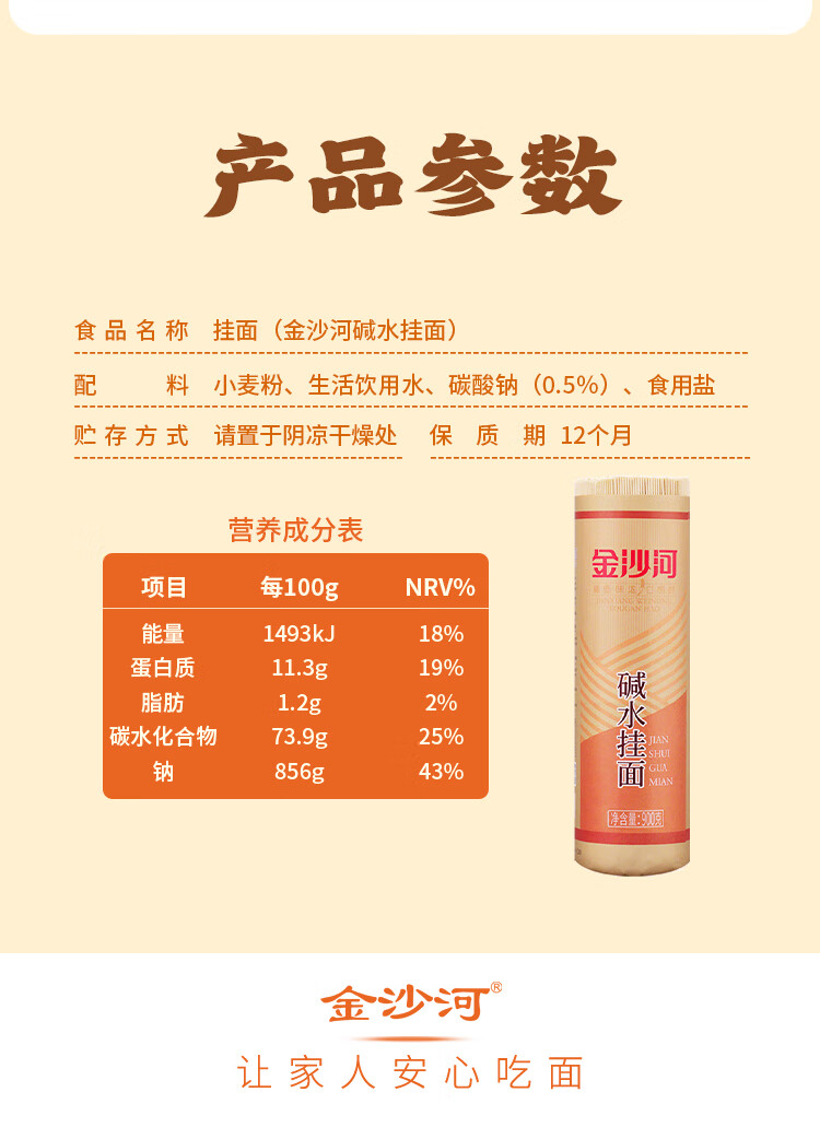 金沙河面条 碱水挂面 热干面面条 碱水面碱面条900g