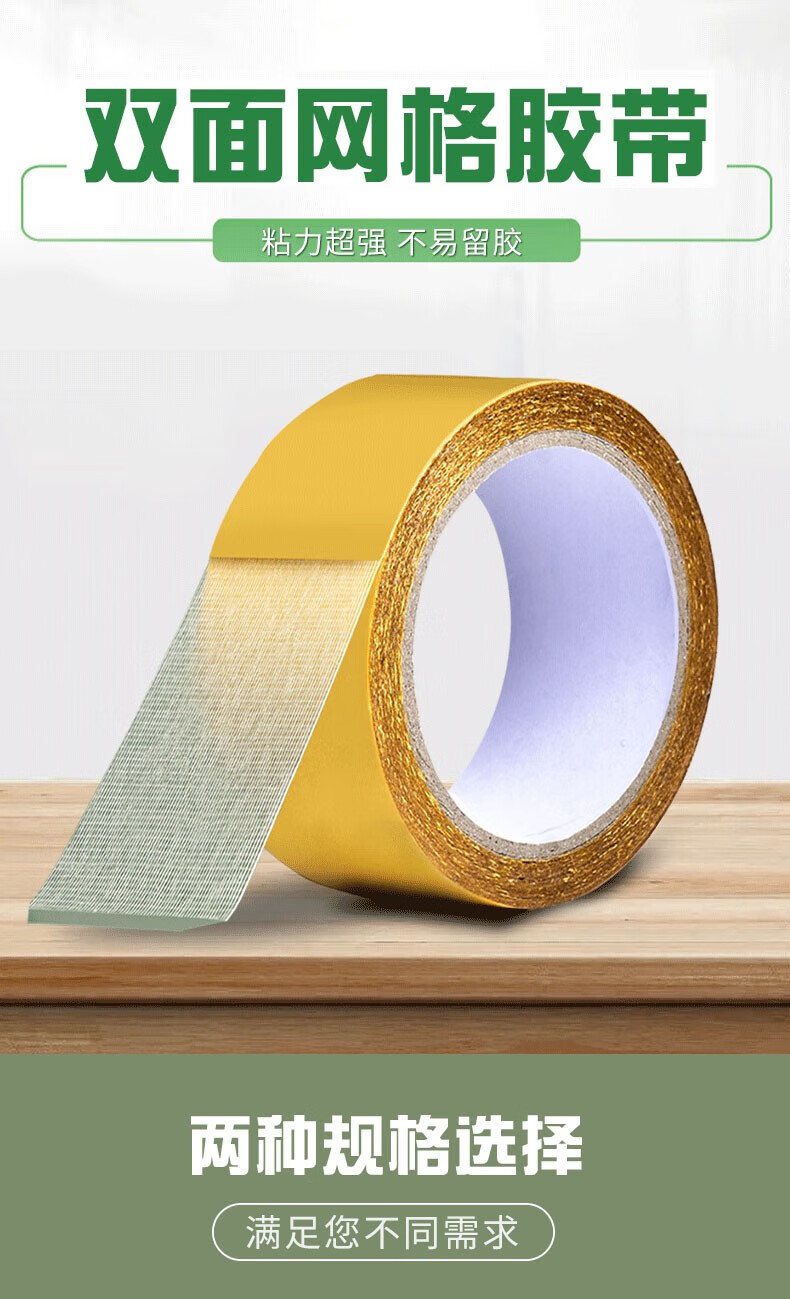 誉品(YUPIN)网格双面胶 强力布基胶带对联专用贴春联高粘度不易留胶黄色防水免打孔墙面用 宽10mm*长10m/1卷装