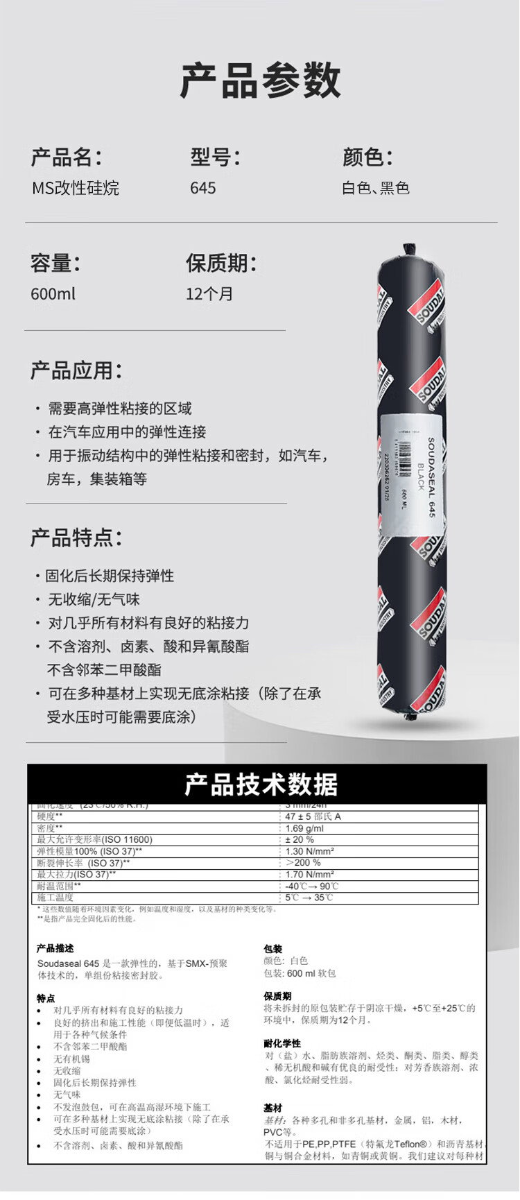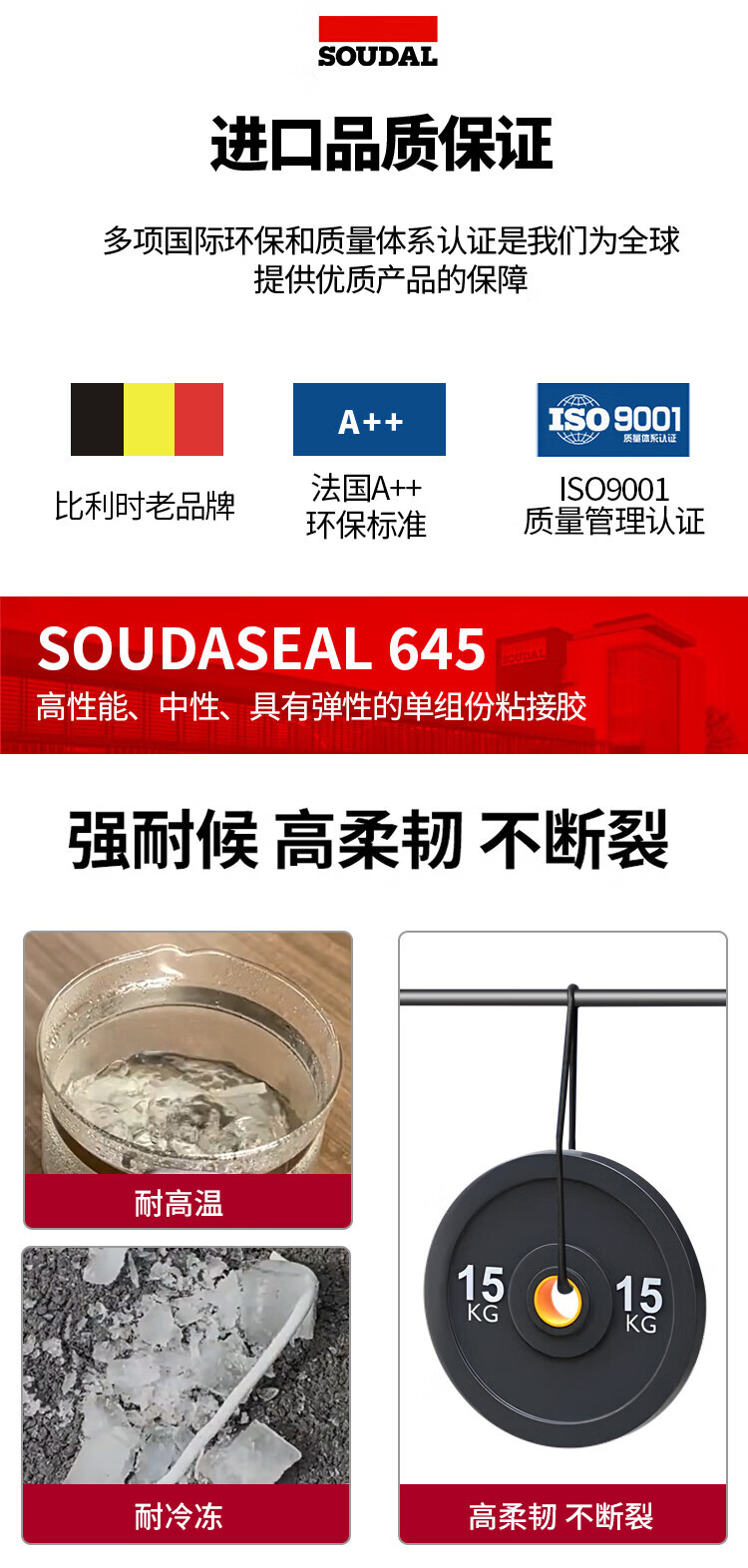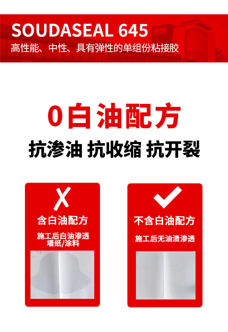 速的奥(SOUDAL)645 MS改性硅烷结构胶耐候门窗幕墙玻璃密封防水填缝 净味环保 进口MS 白色 600ml 比利时皇室指定品牌