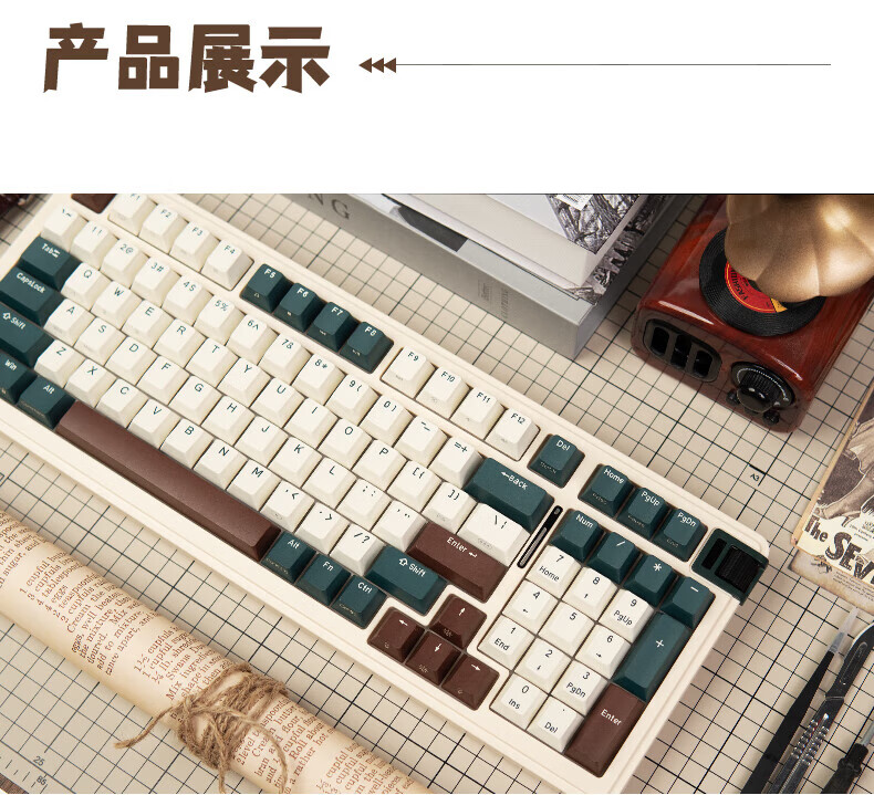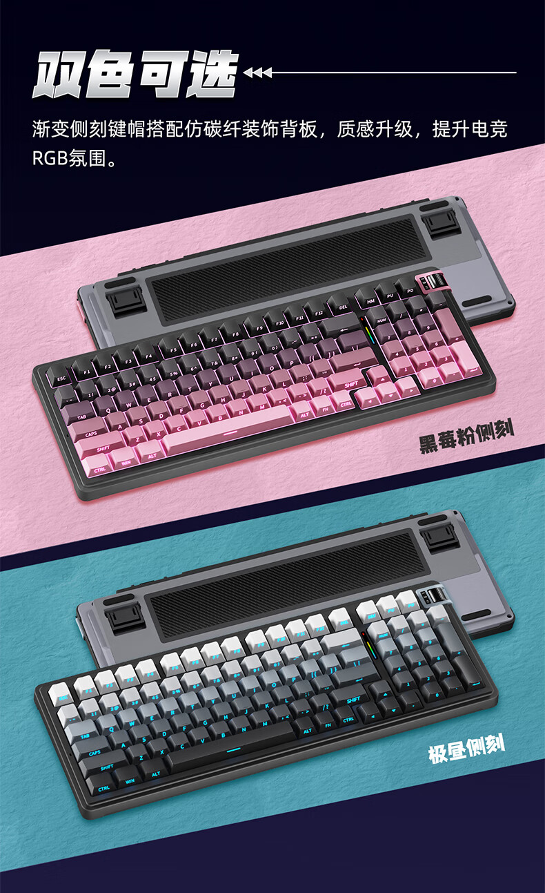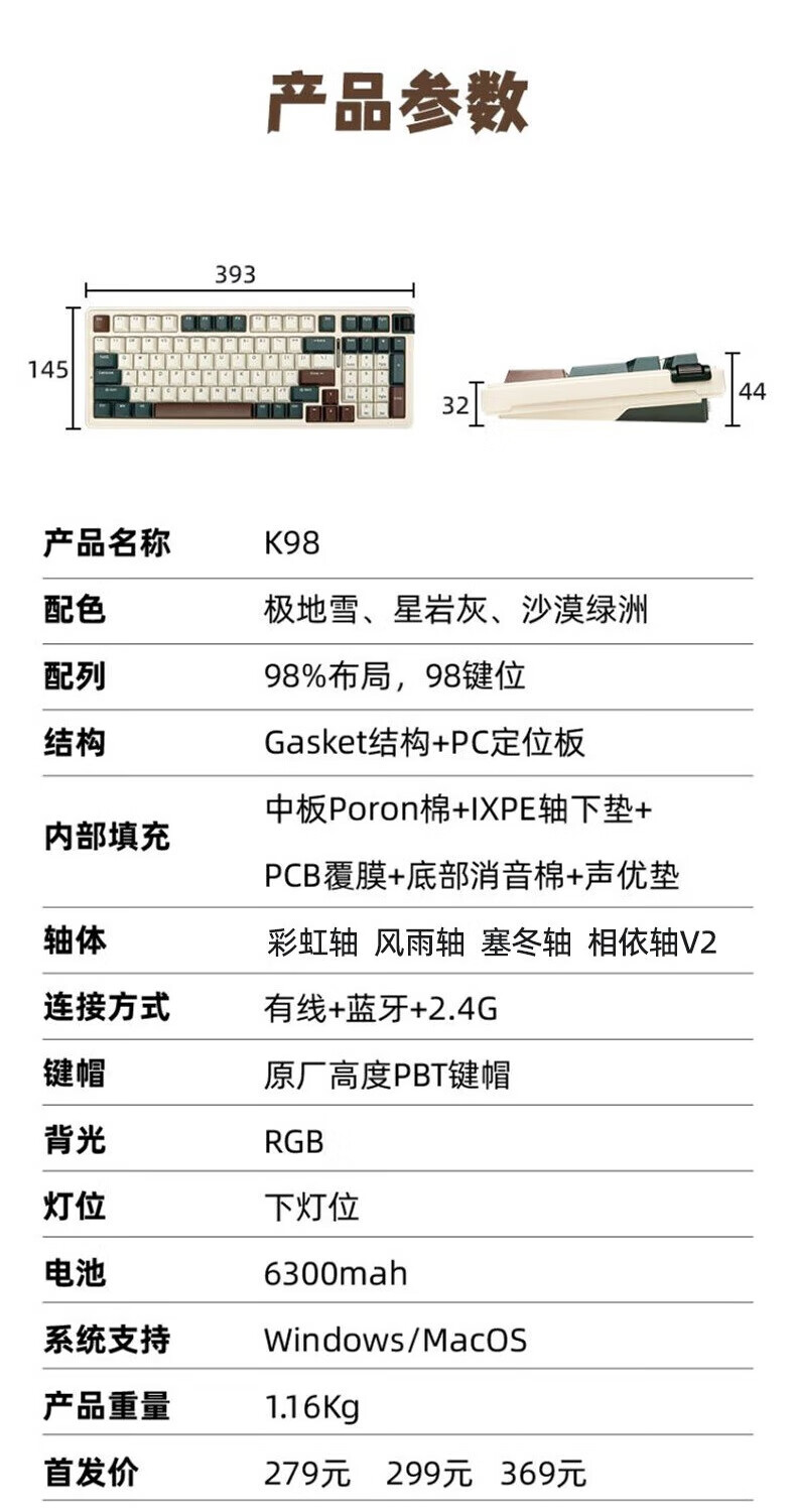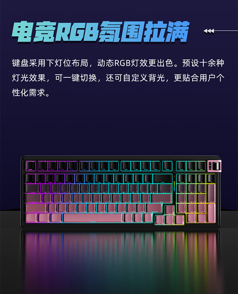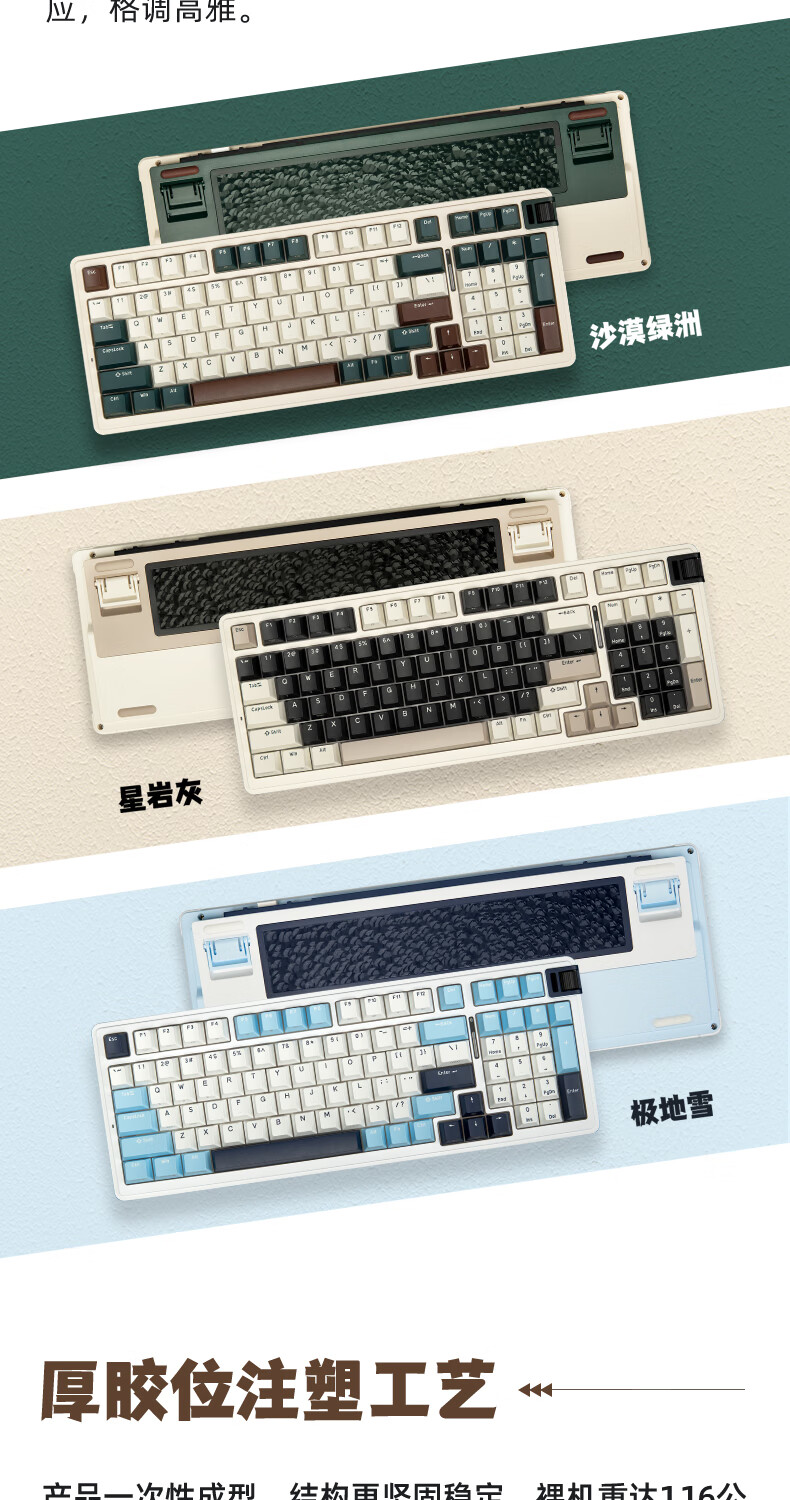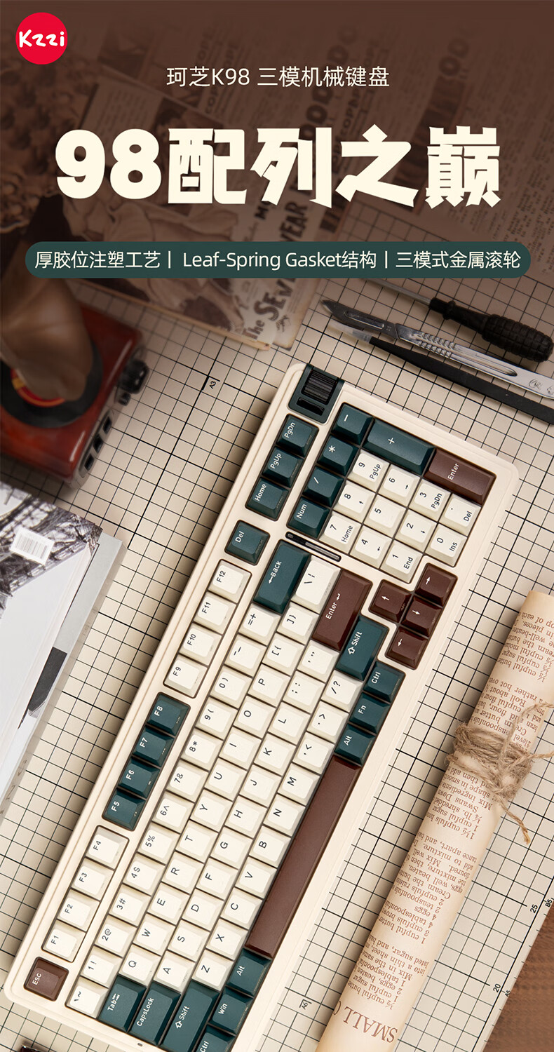 珂芝(KZZI)K98Pro无线机械键盘蓝牙有线三模游戏电竞办公键盘98键gasket客制化RGB热插拔胶坨坨麻将音 沙漠绿洲【彩虹轴】三模-游戏优选 98键
