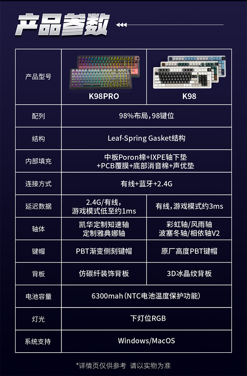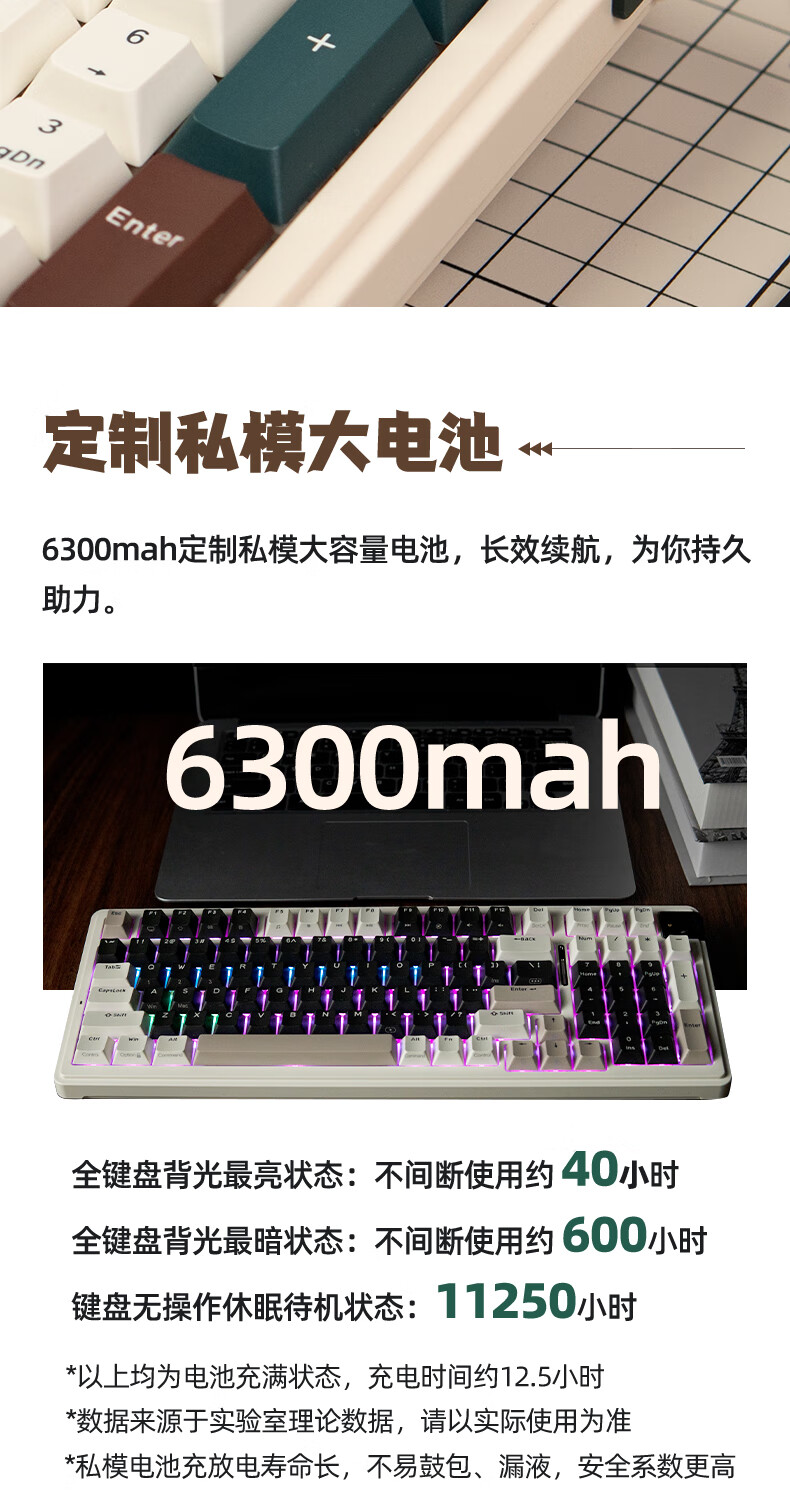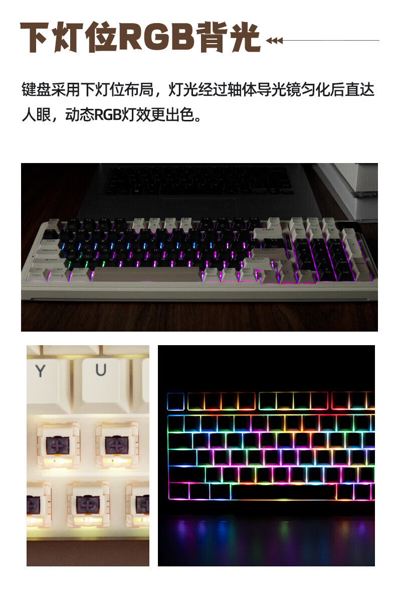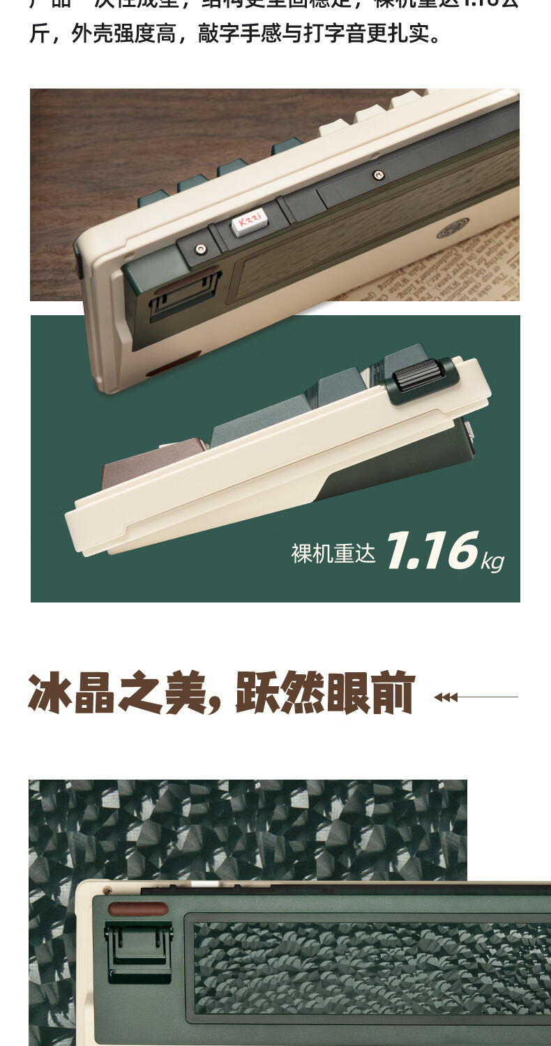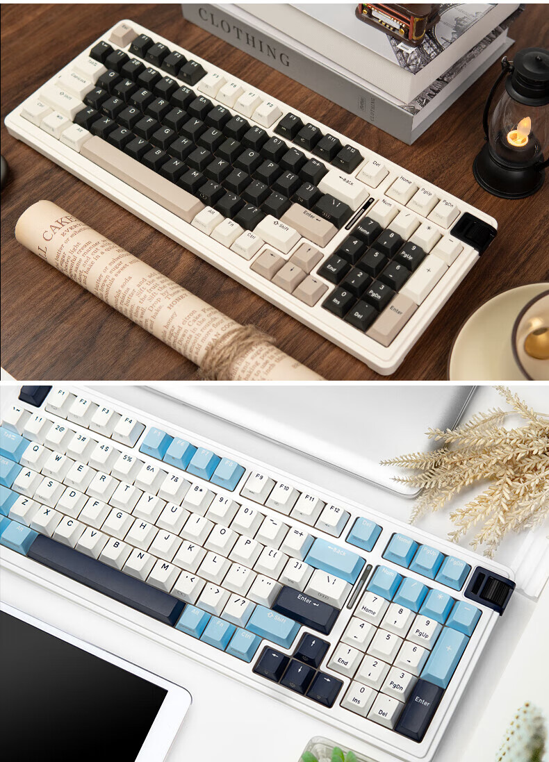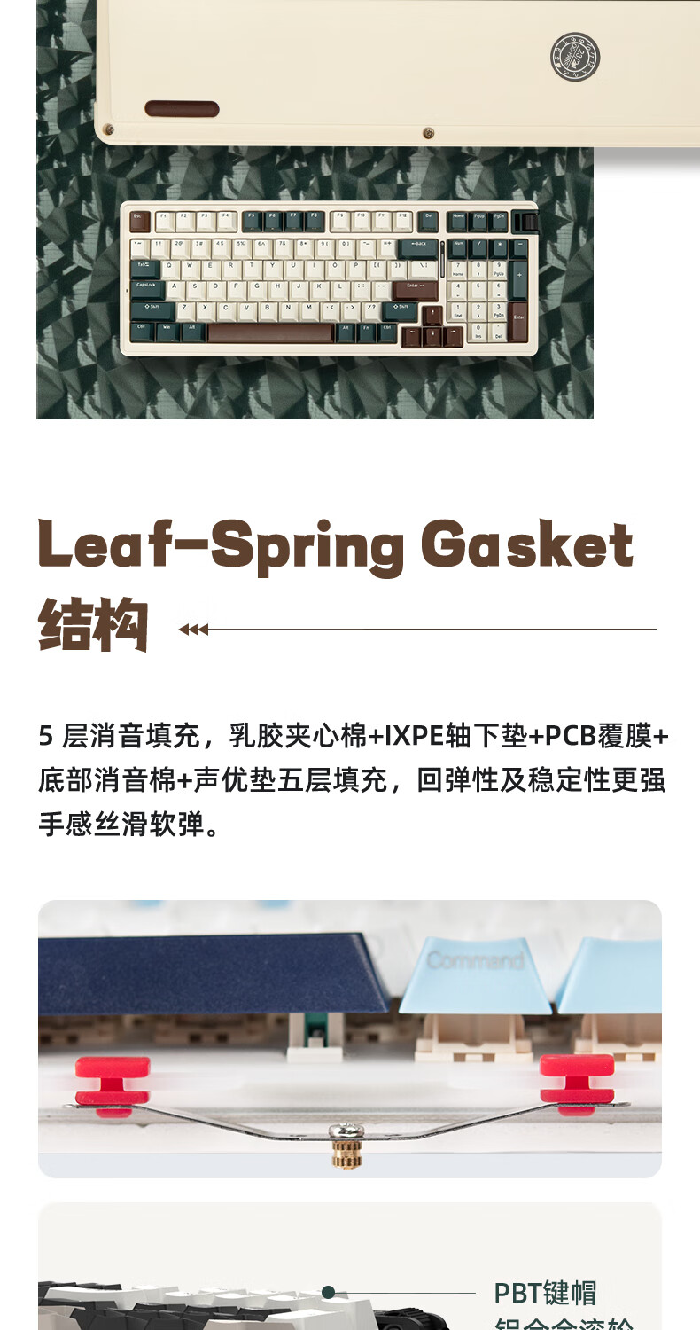 珂芝(KZZI)K98Pro无线机械键盘蓝牙有线三模游戏电竞办公键盘98键gasket客制化RGB热插拔胶坨坨麻将音 沙漠绿洲【彩虹轴】三模-游戏优选 98键