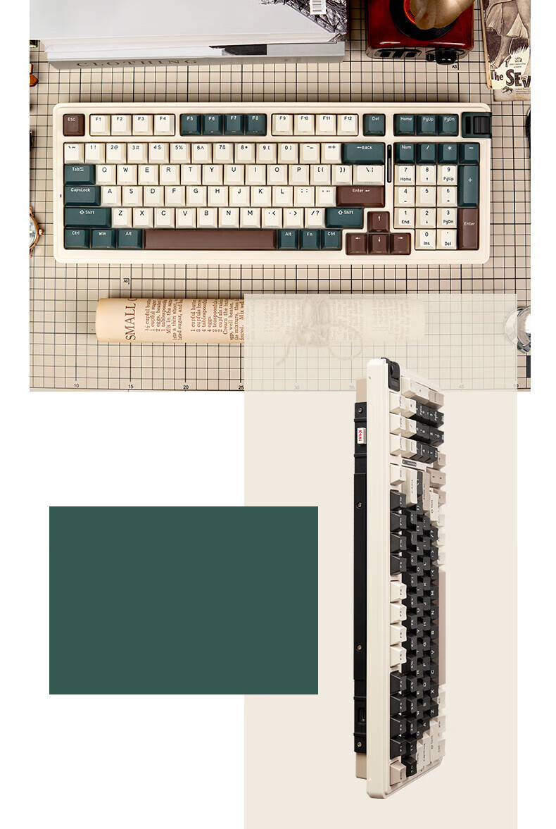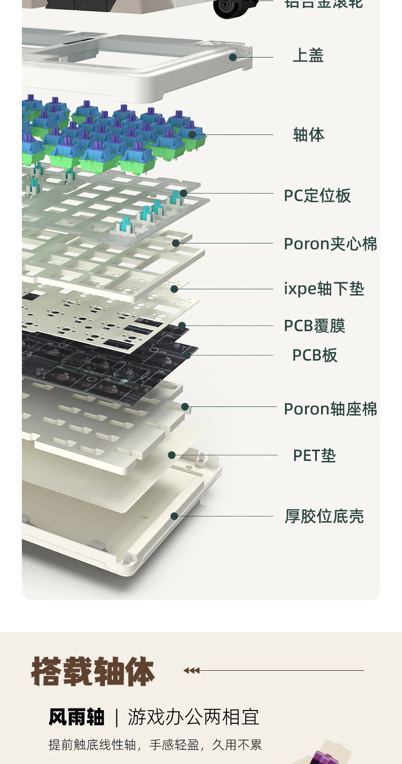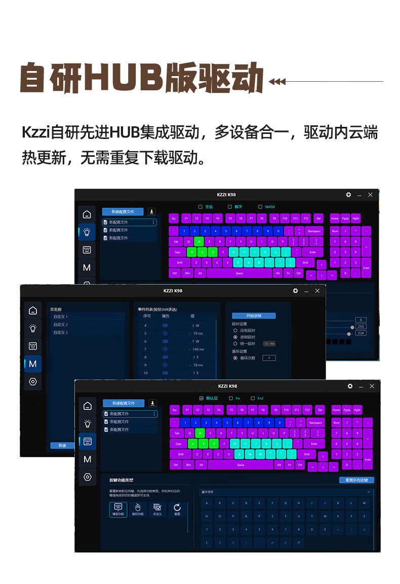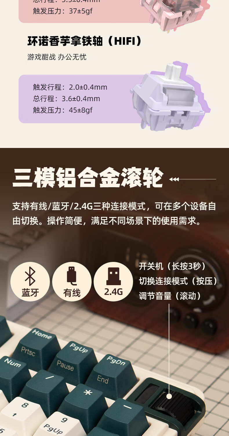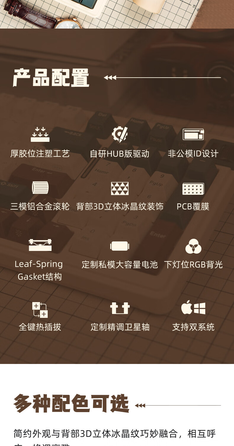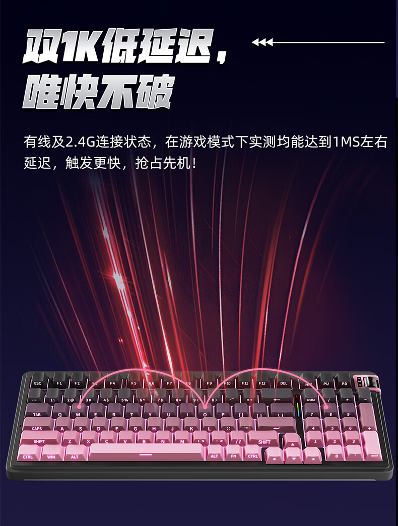珂芝(KZZI)K98Pro无线机械键盘蓝牙有线三模游戏电竞办公键盘98键gasket客制化RGB热插拔胶坨坨麻将音 沙漠绿洲【彩虹轴】三模-游戏优选 98键