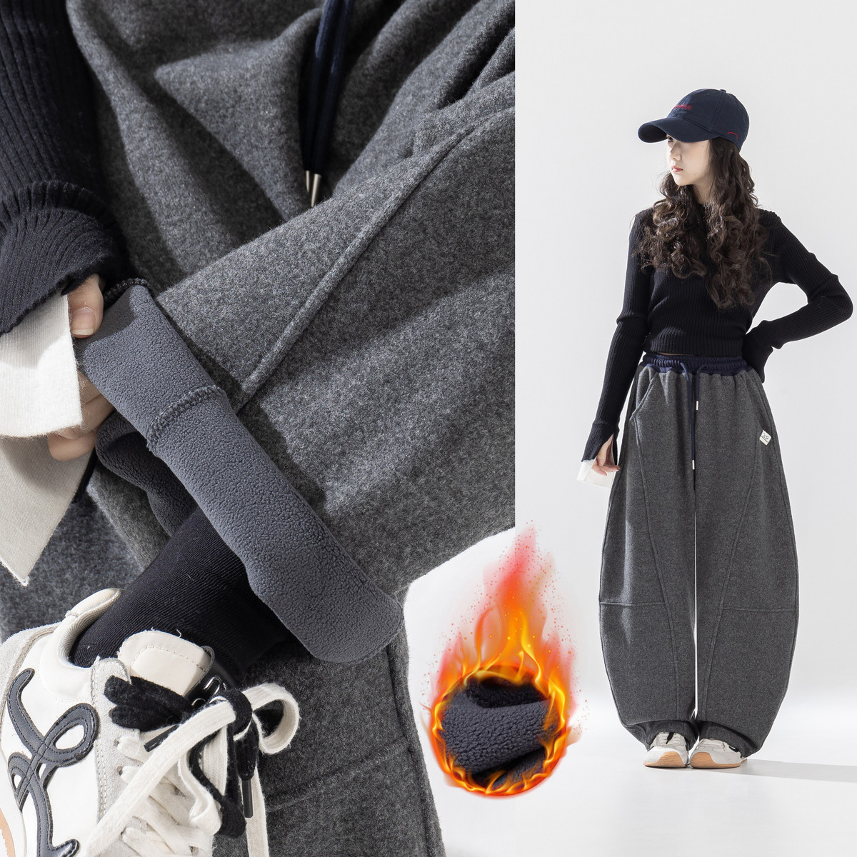 URBANSHOW 女童裤子冬季新款加绒加厚休闲运动裤香蕉裤弯刀裤中大童装长裤子