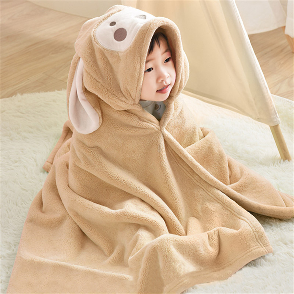 线线猫 A类新生儿浴巾带帽斗篷宝宝洗澡游泳裹巾披风柔软珊瑚绒吸水易干