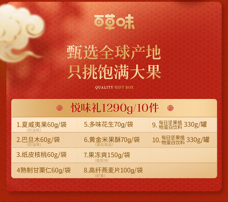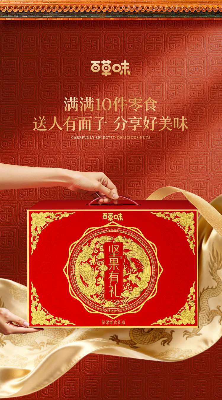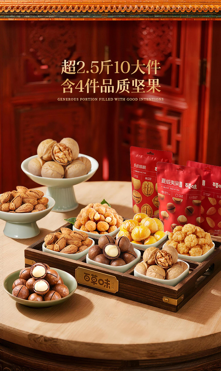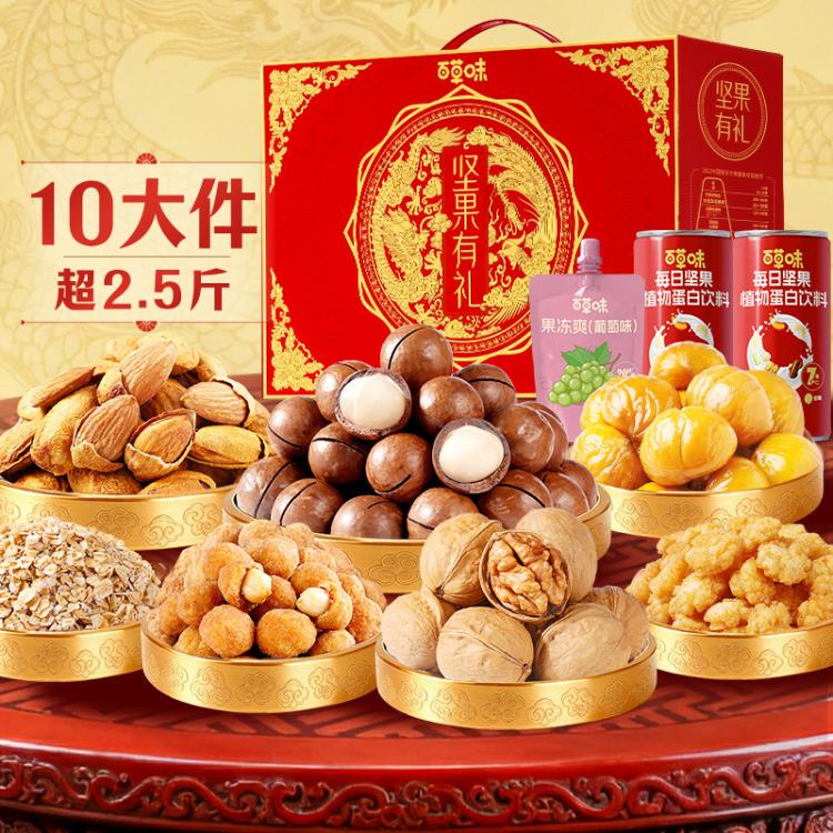 百草味 10件坚果零食礼盒夏威夷果巴旦木核桃年货礼盒送礼送长辈新年礼盒