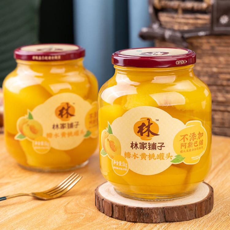 林家铺子 1000g黄桃罐头大玻璃罐水果罐头2斤装