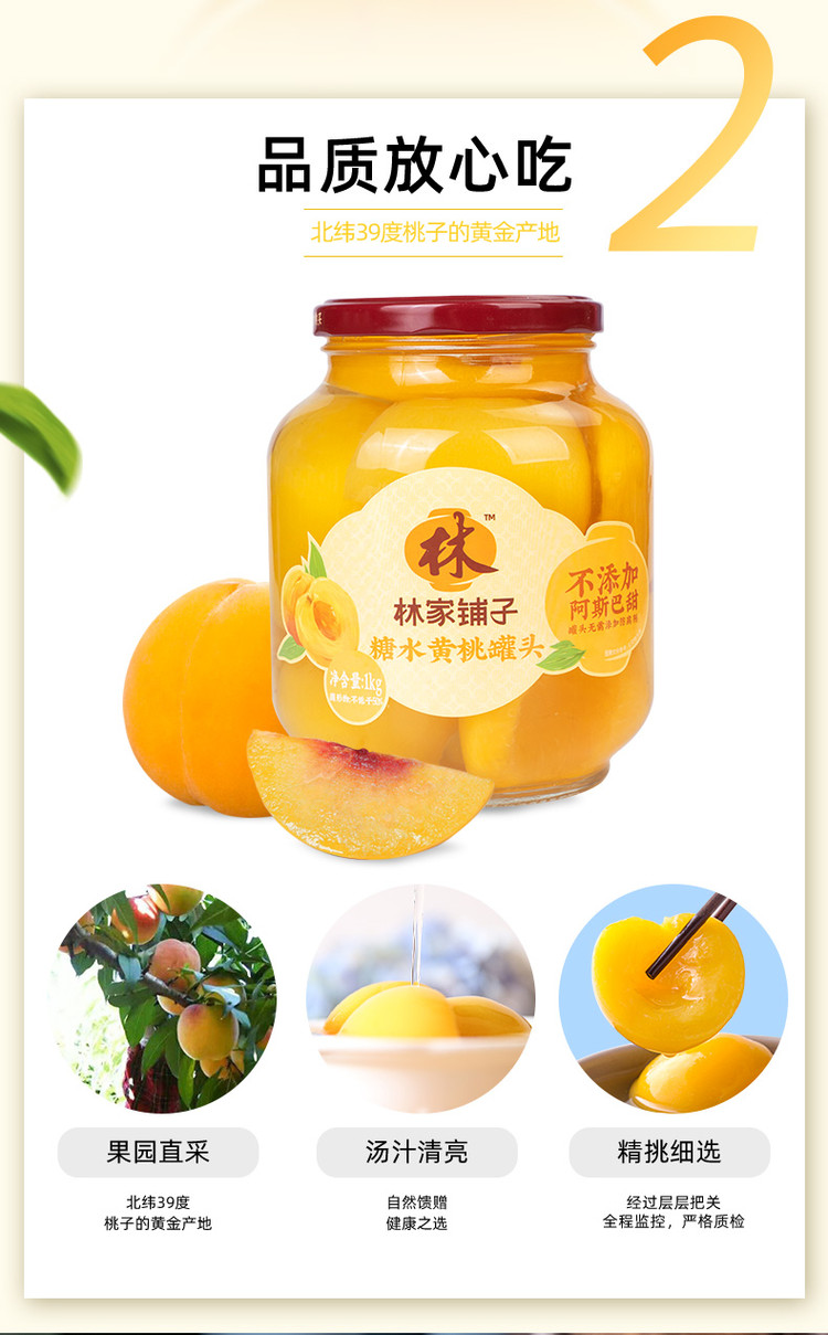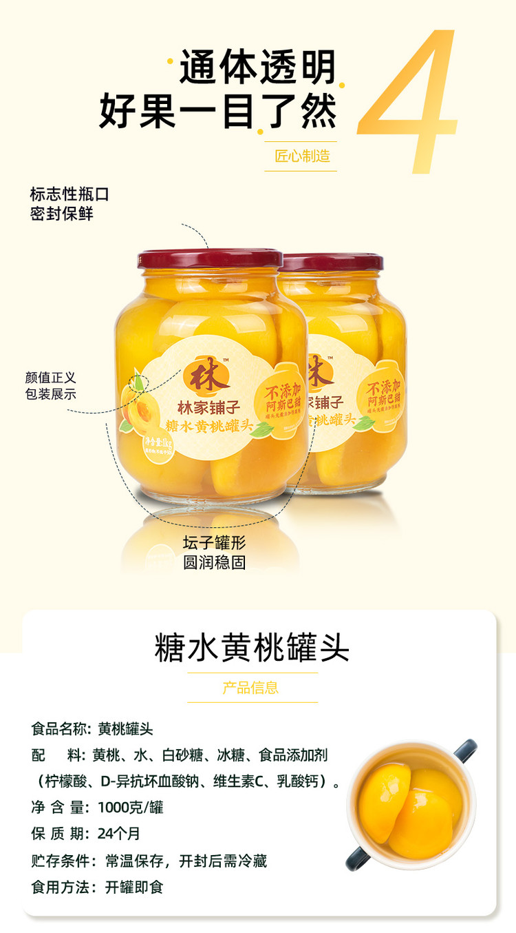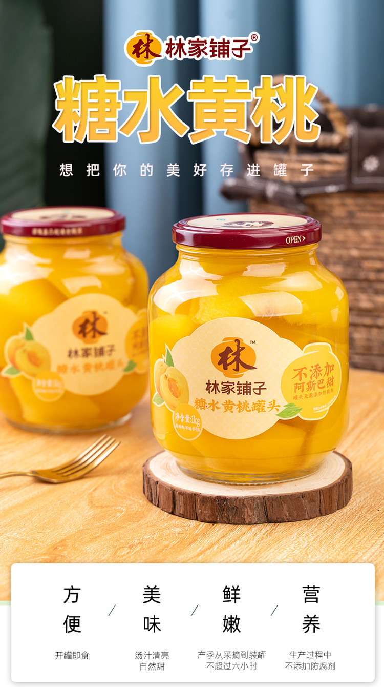 林家铺子 1000g黄桃罐头大玻璃罐水果罐头2斤装 【售价】:¥15.9 下单链接: