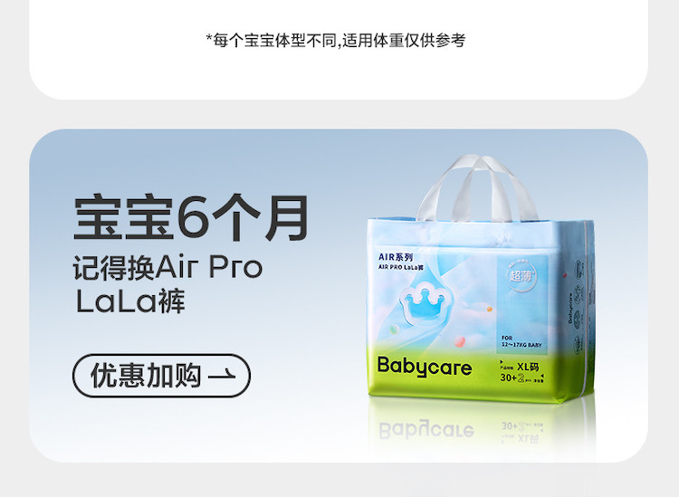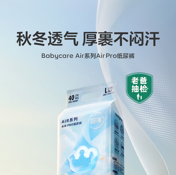 Babycare Air pro日用纸尿裤袋装尿不湿mini装S-XL 【售价】:¥43 【优惠券】:¥5.00 下单链接:
