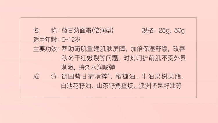 贝德美 儿童蓝甘菊面霜护肤保湿儿童润肤乳秋冬滋润面霜 【售价】:¥33 【优惠券】:¥3.00 下单链接: