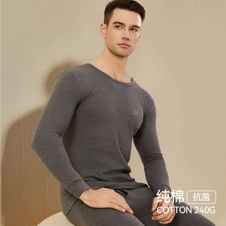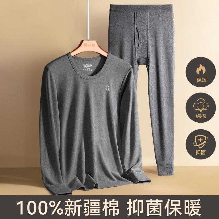 芬腾 【100%纯棉】秋衣秋裤男士套装秋冬季纯棉圆领保暖内衣男抑菌