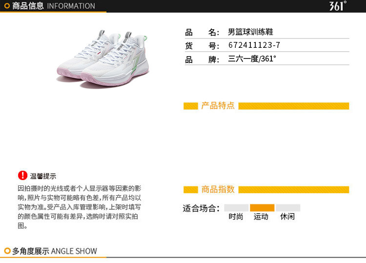 361° 【big3 team SE】专业篮球训练鞋男式篮球鞋 【售价】:¥159 下单链接: