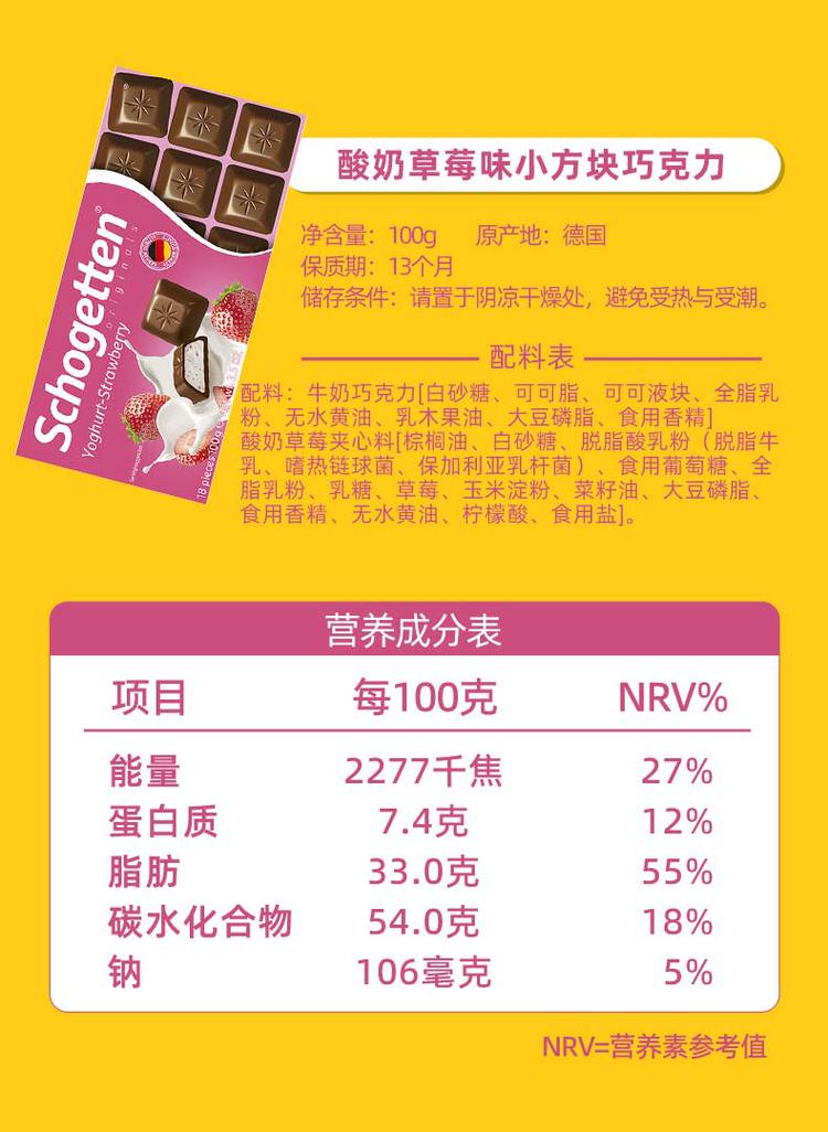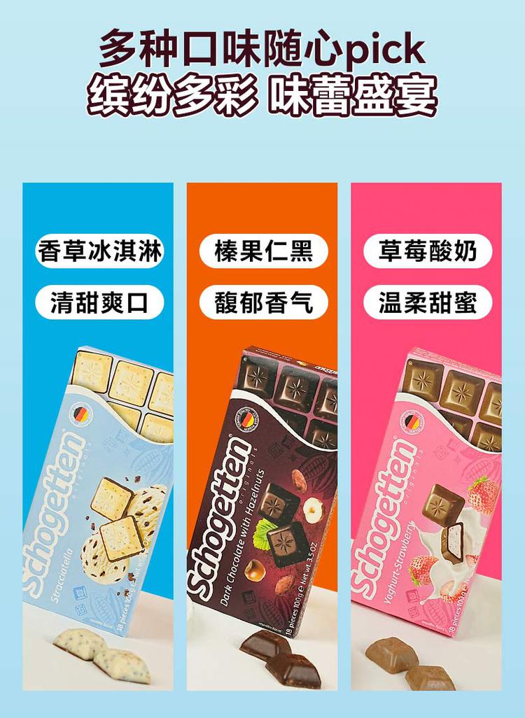 SCHOGETTEN 丝格德德国进口纯可可脂草莓榛子牛奶黑白夹心巧克力零食18粒装 【售价】:¥18.05 下单链接: