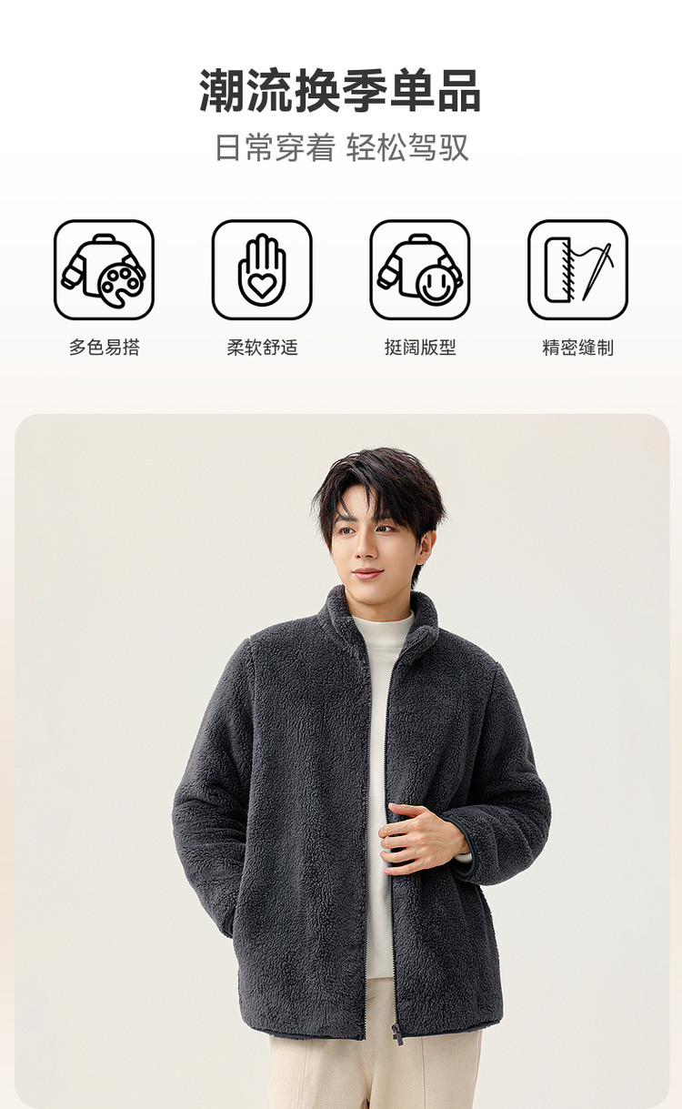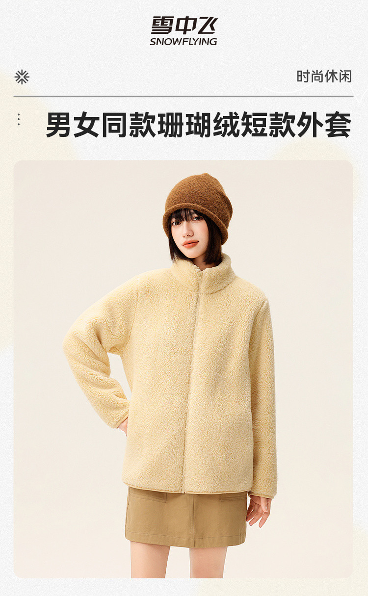 雪中飞 【石墨烯】2025新款秋冬短款立领加大口袋男女同款珊瑚绒外套 【售价】:¥79 下单链接:
