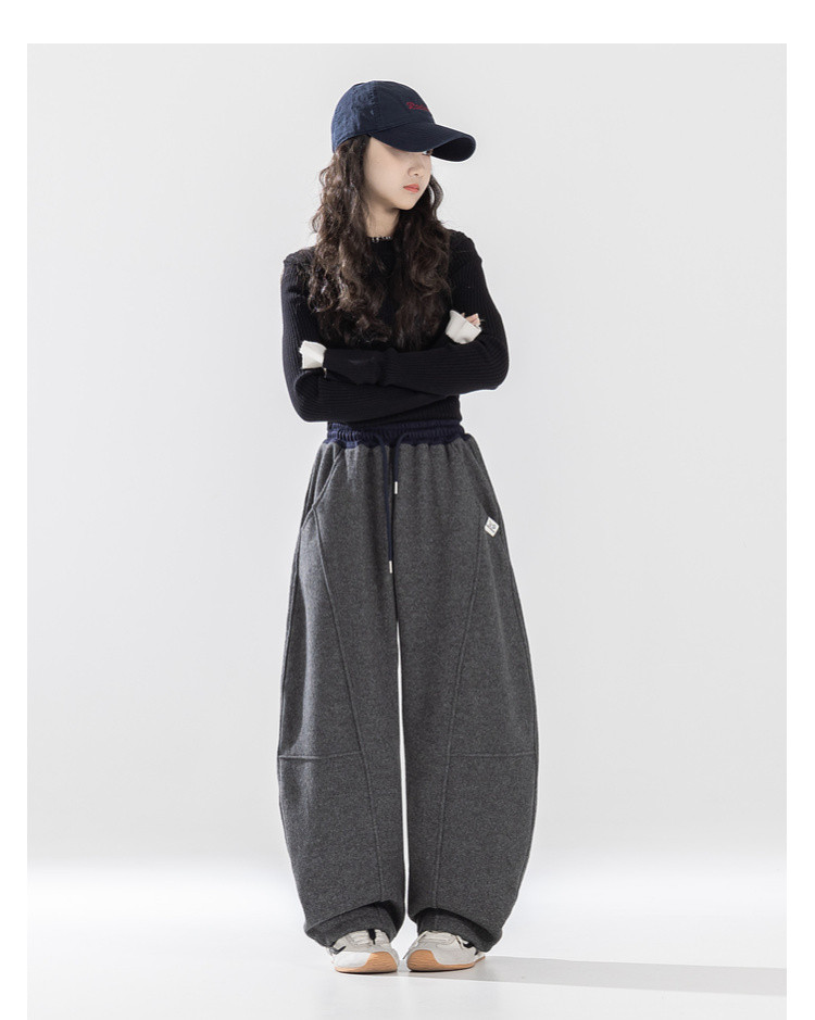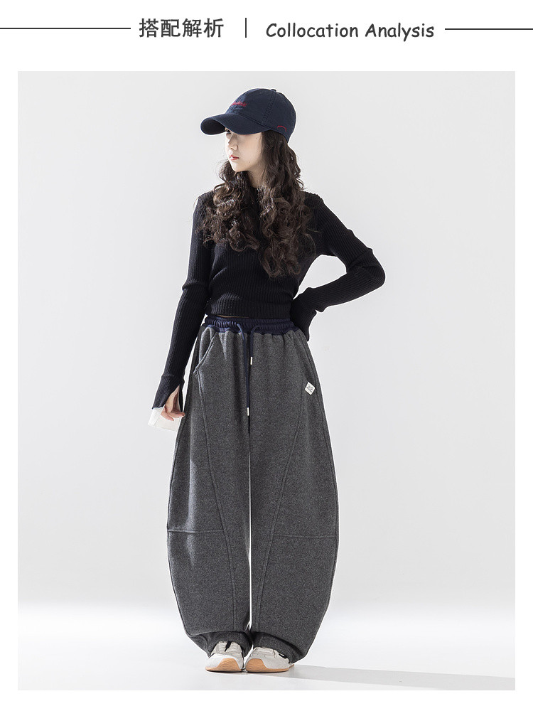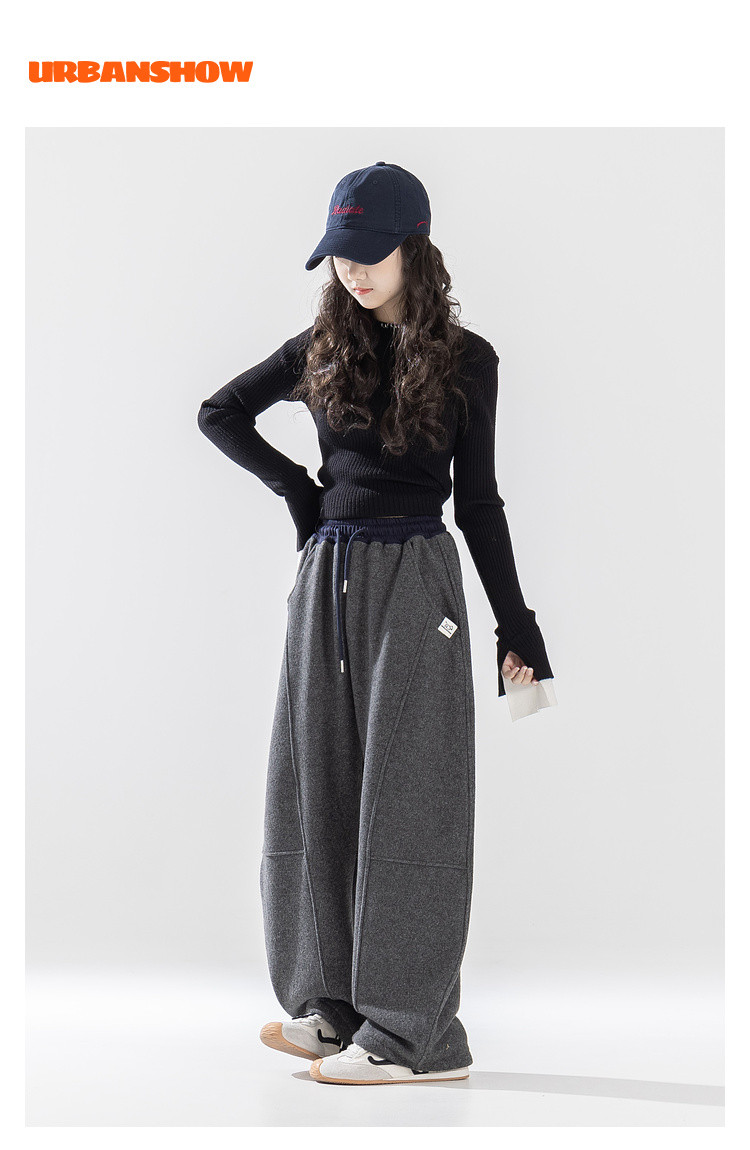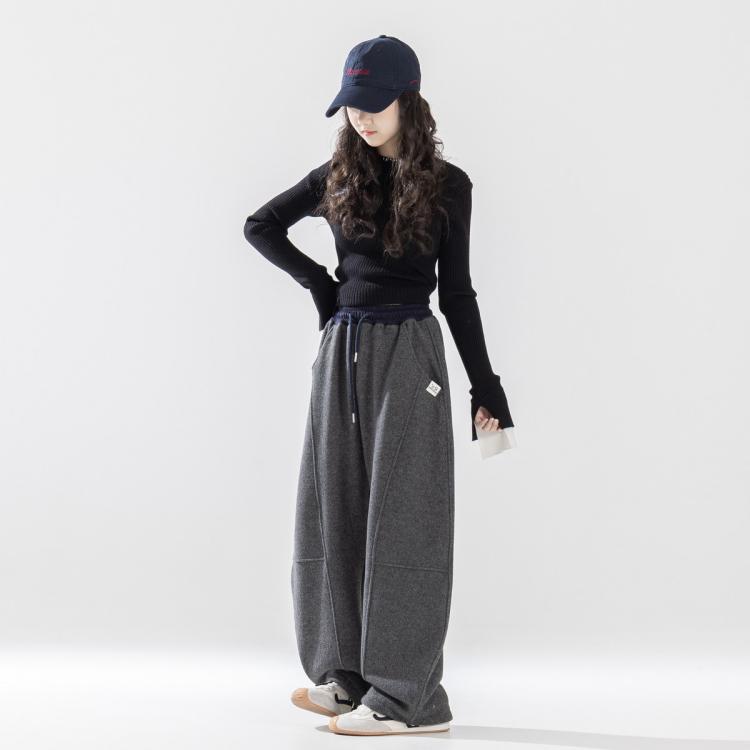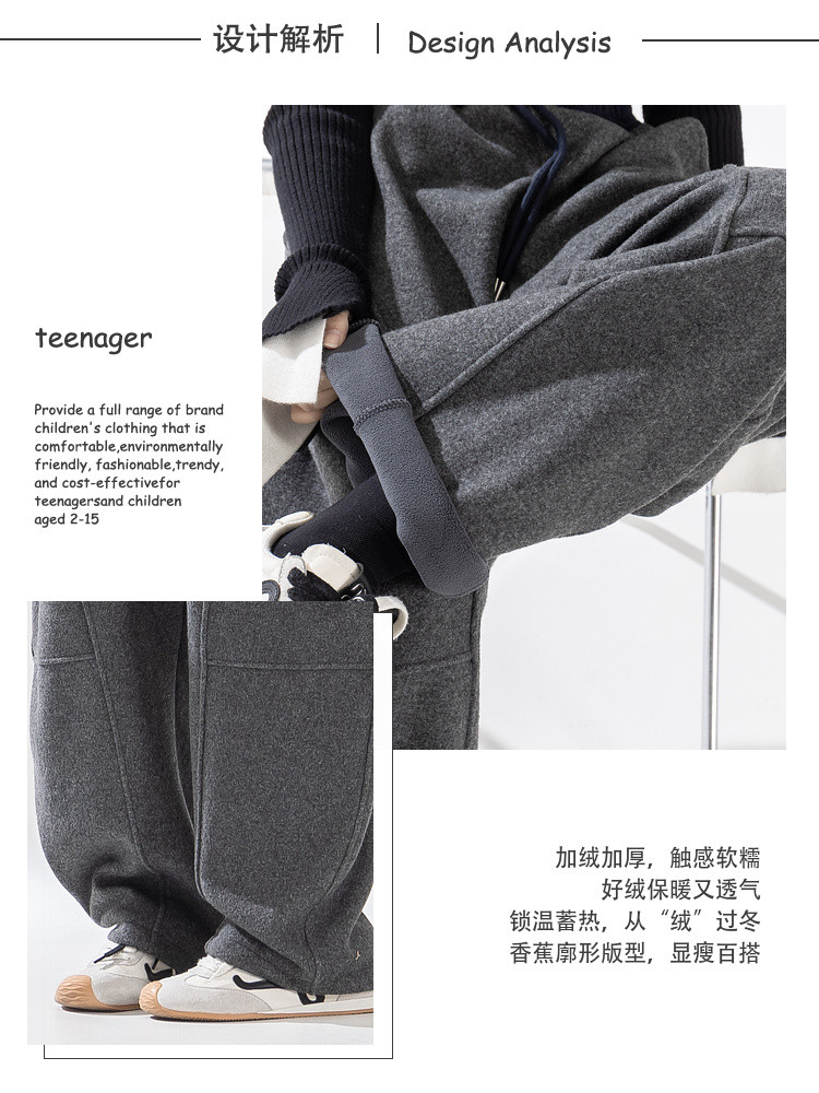 URBANSHOW 女童裤子冬季新款加绒加厚休闲运动裤香蕉裤弯刀裤中大童装长裤子
