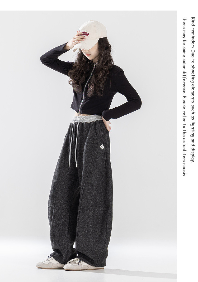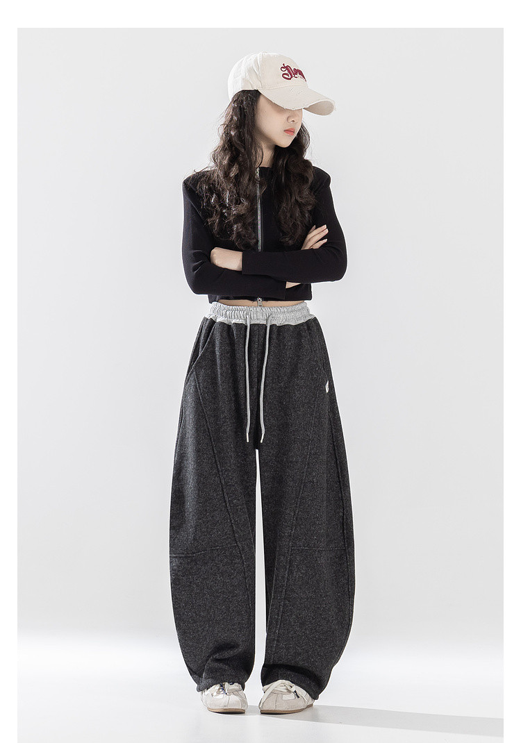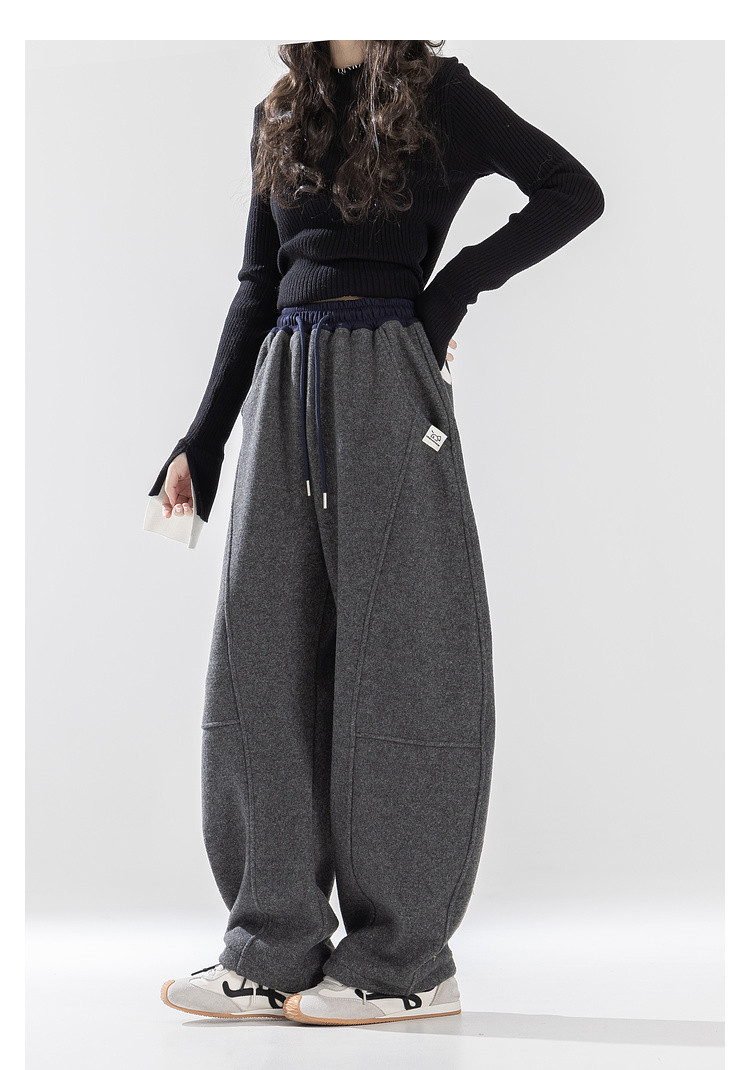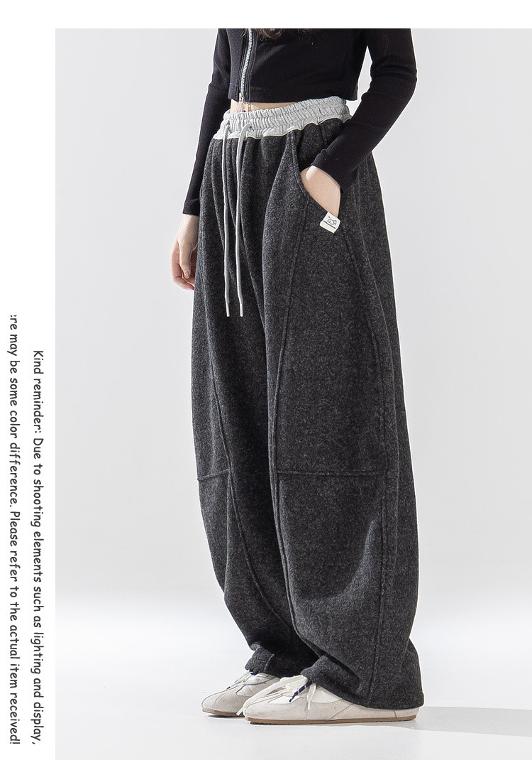 URBANSHOW 女童裤子冬季新款加绒加厚休闲运动裤香蕉裤弯刀裤中大童装长裤子
